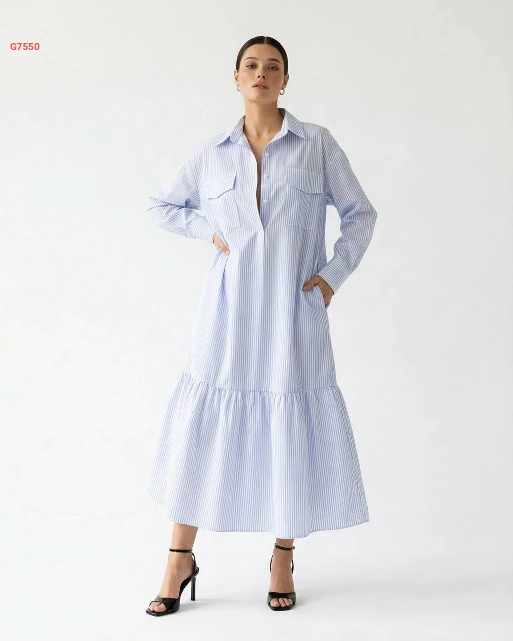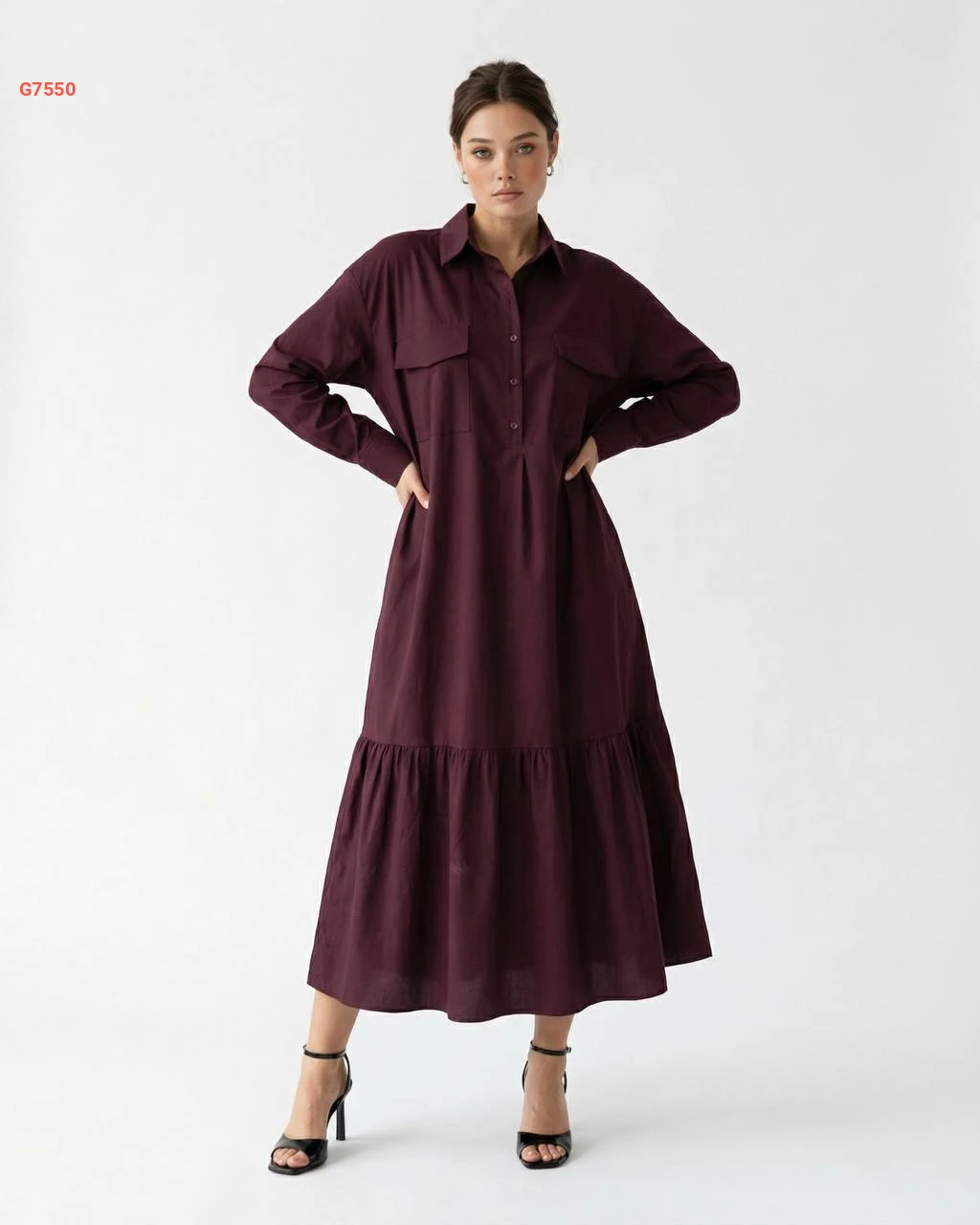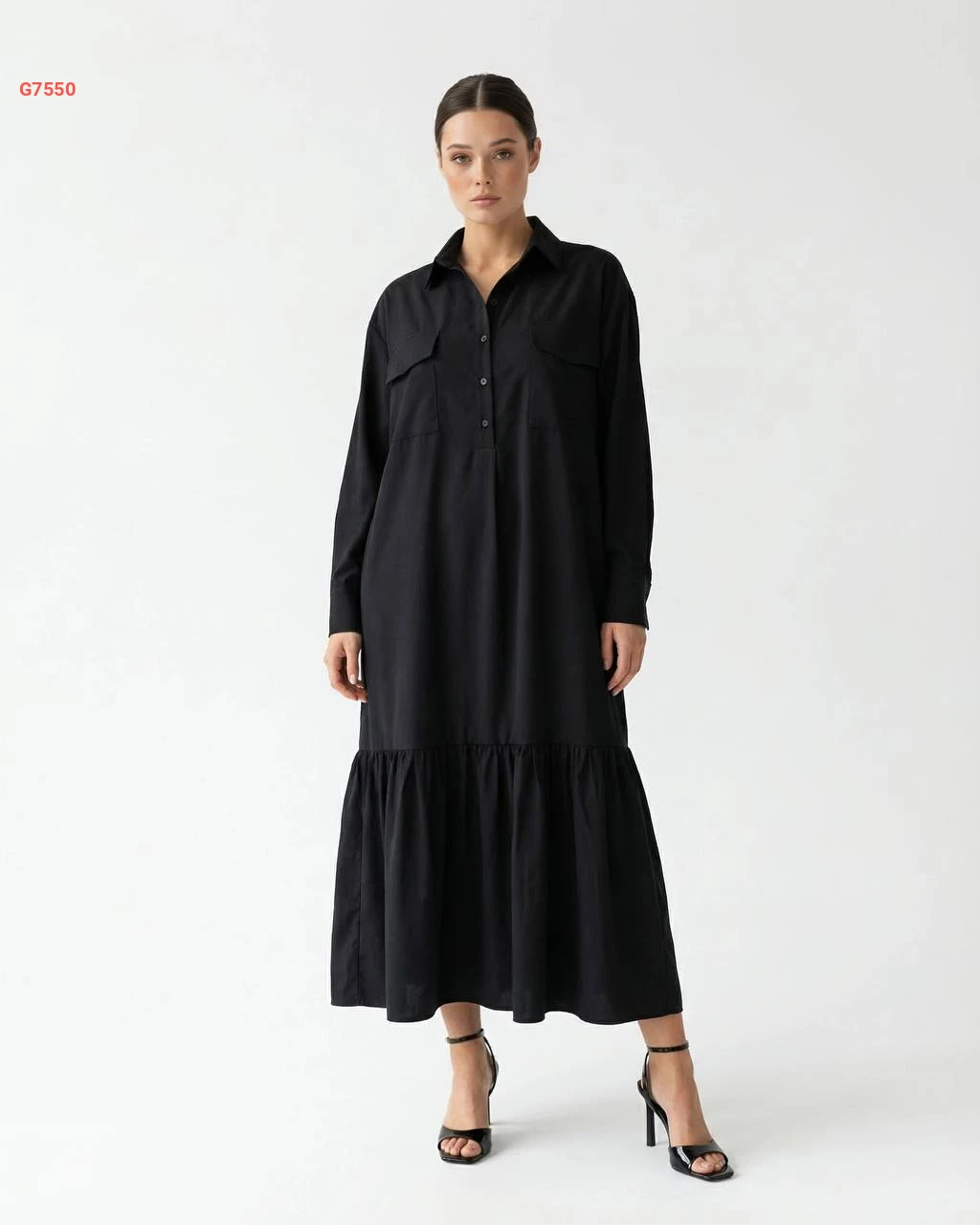 فستان طويل بأزرار نصفية