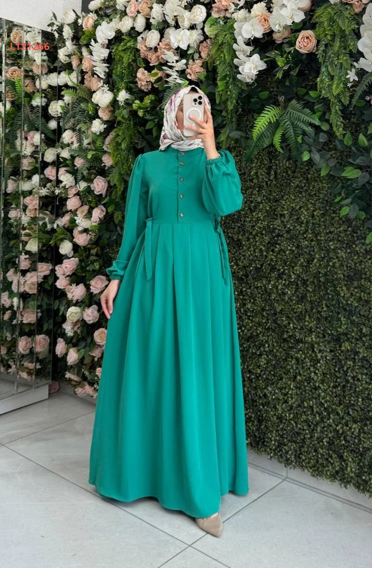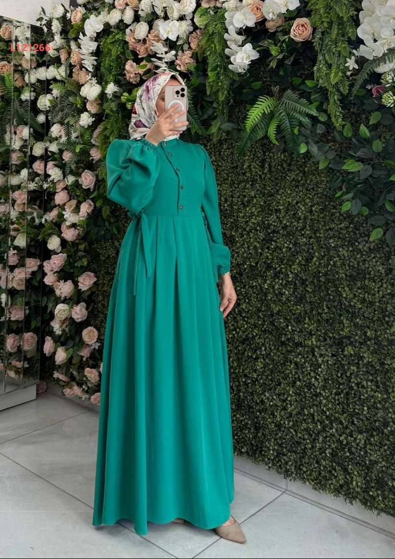 فستان طويل بأزرار نصفية