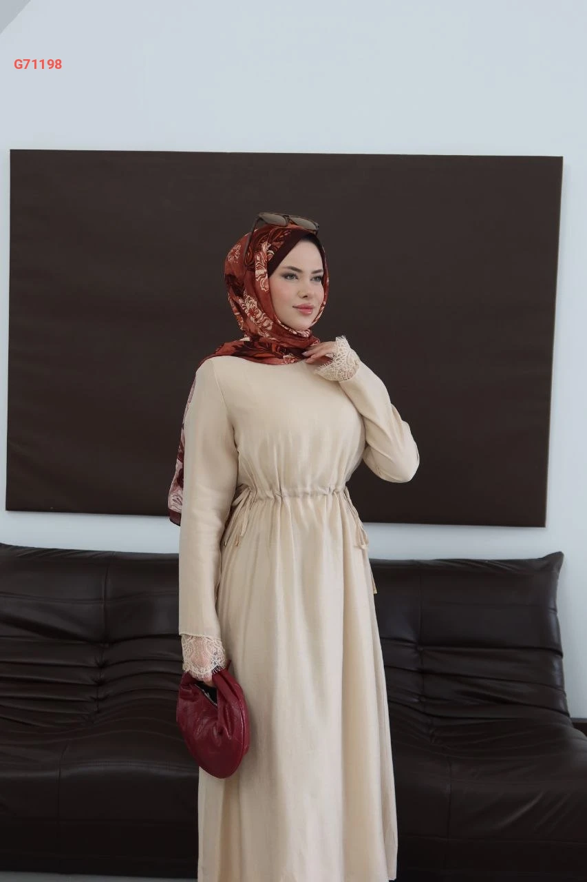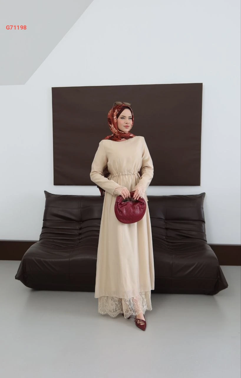 فستان طويل مع دانتيل وزنار زم