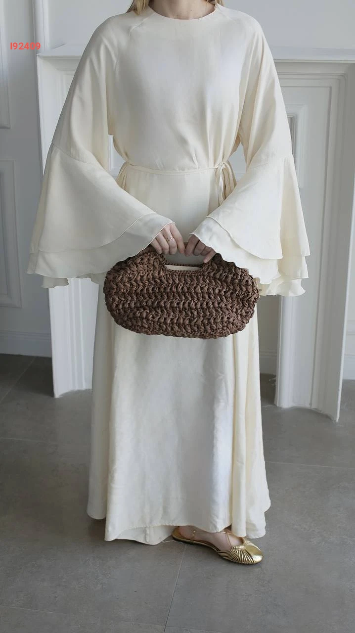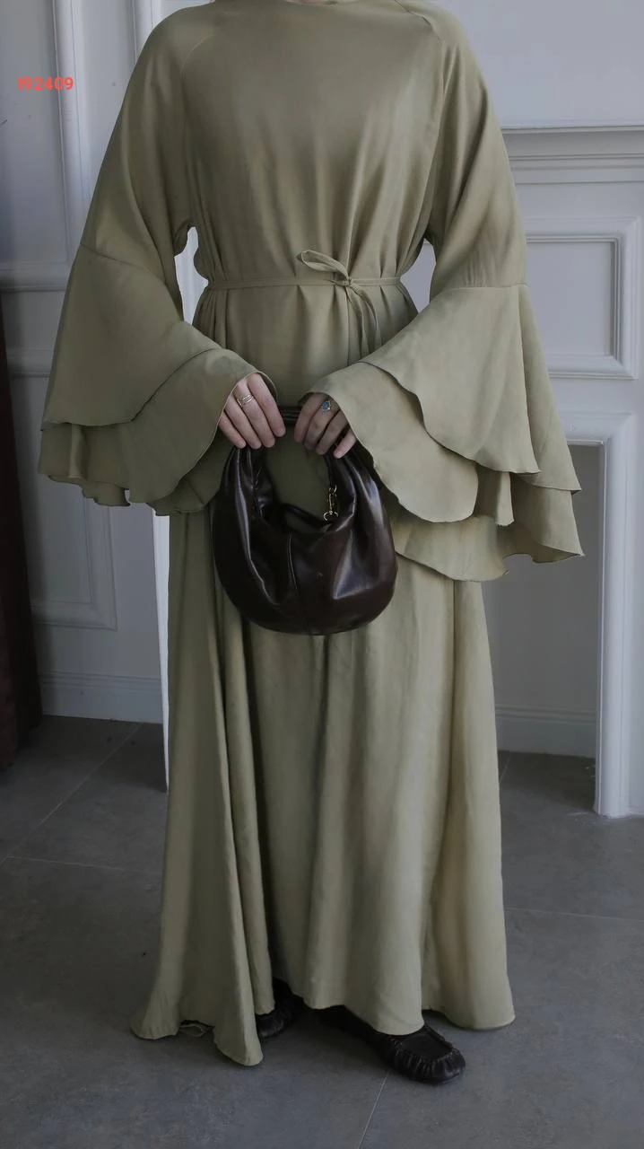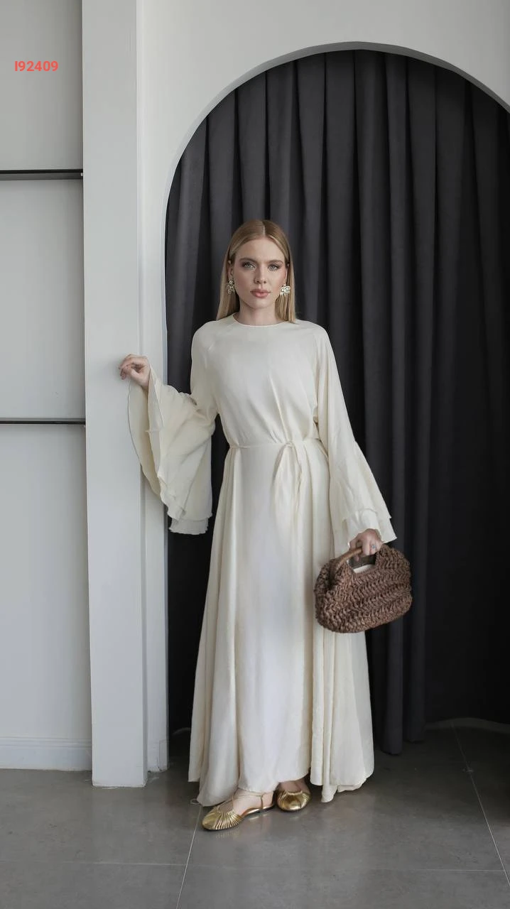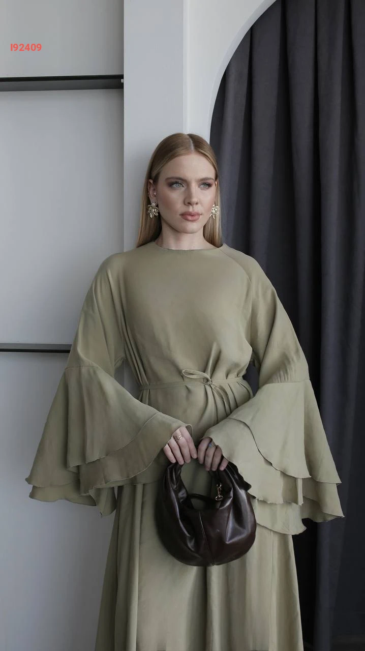 فستان طويل بأكمام كشكش كلوش