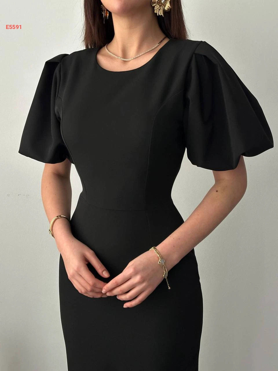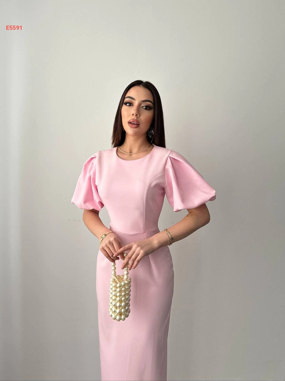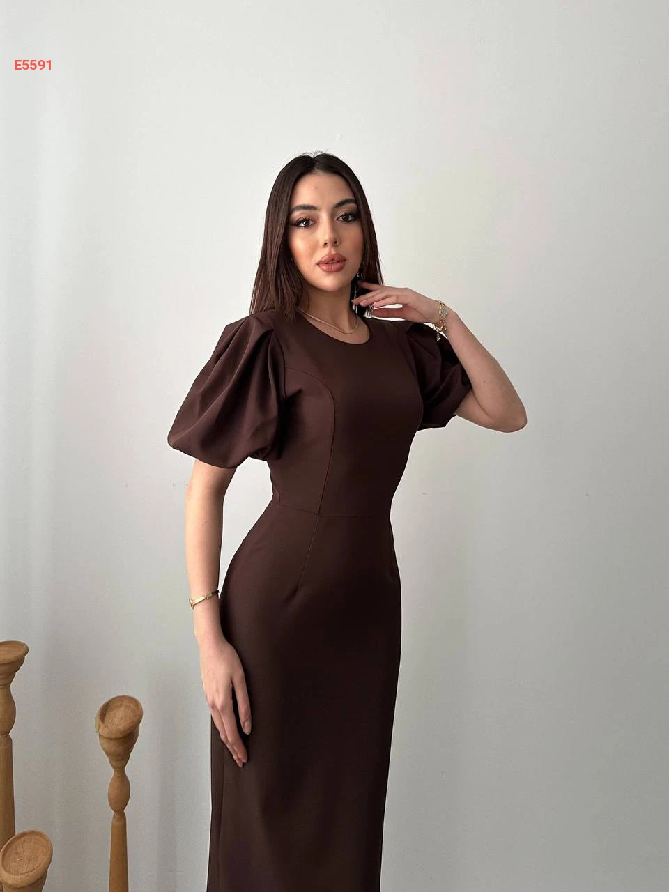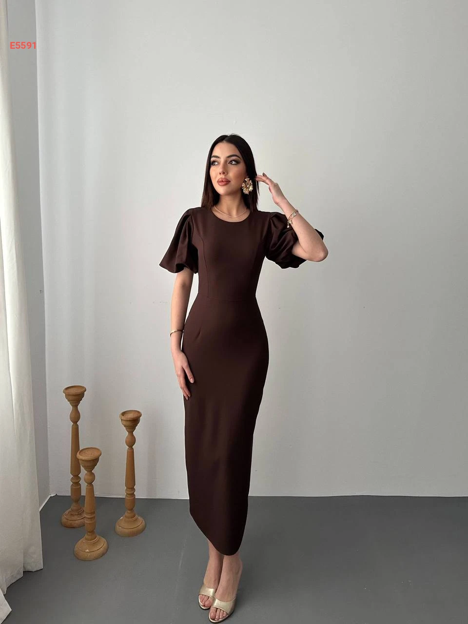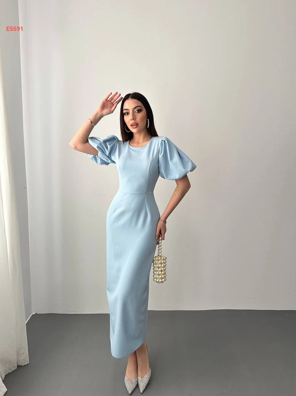فستان طويل بأكمام نفخ قصيرة