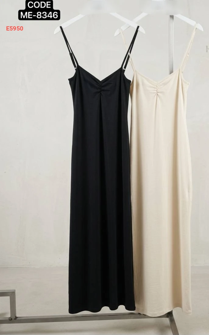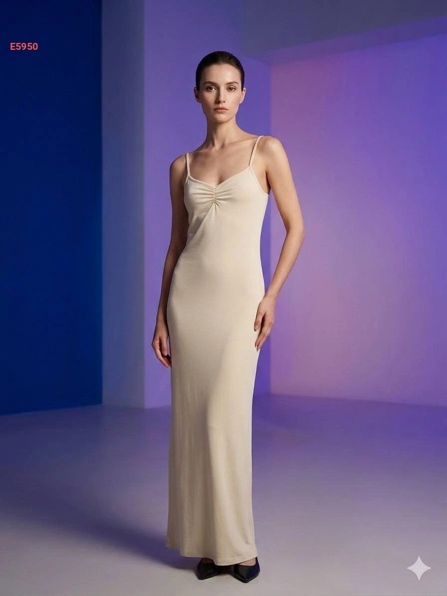 فستان طويل بحمالات رفيعة