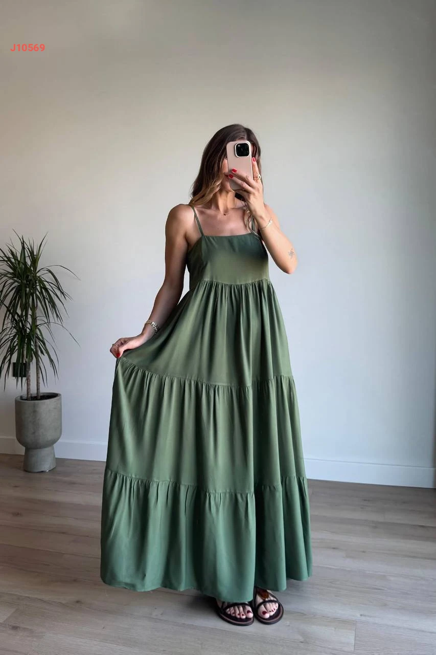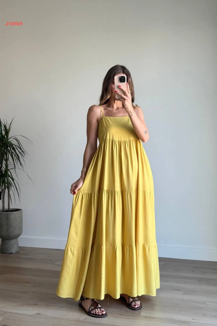 فستان طويل بحمالات رفيعة