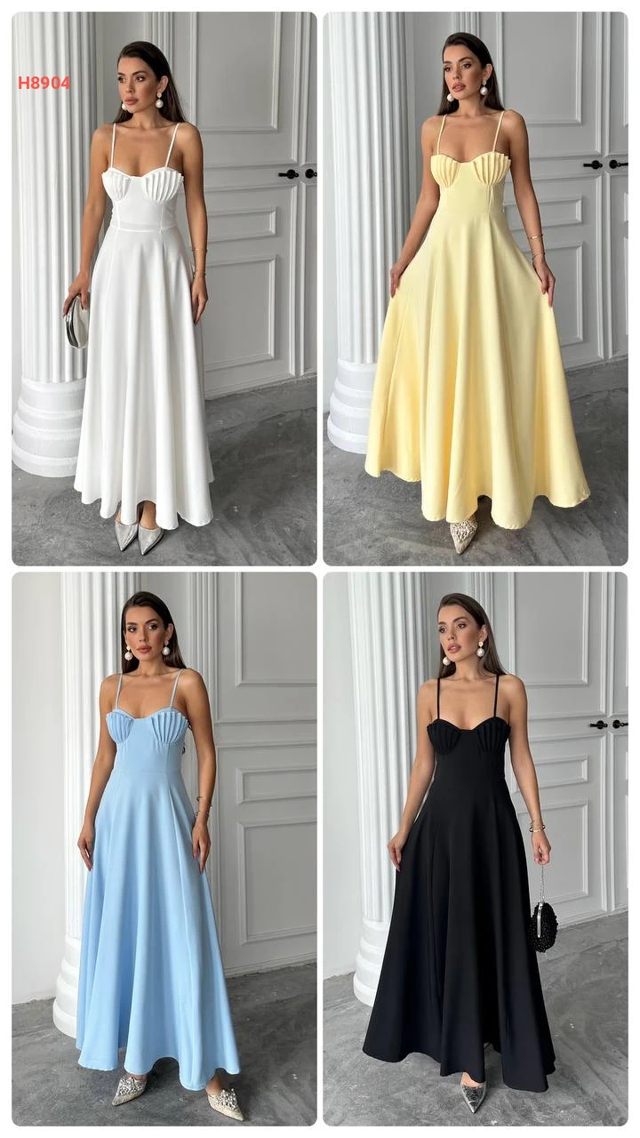 فستان طويل بحمالات رفيعة