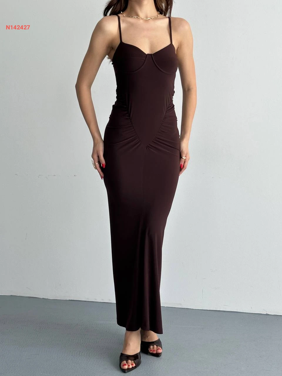 فستان طويل بحمالات رفيعة