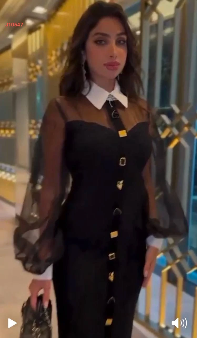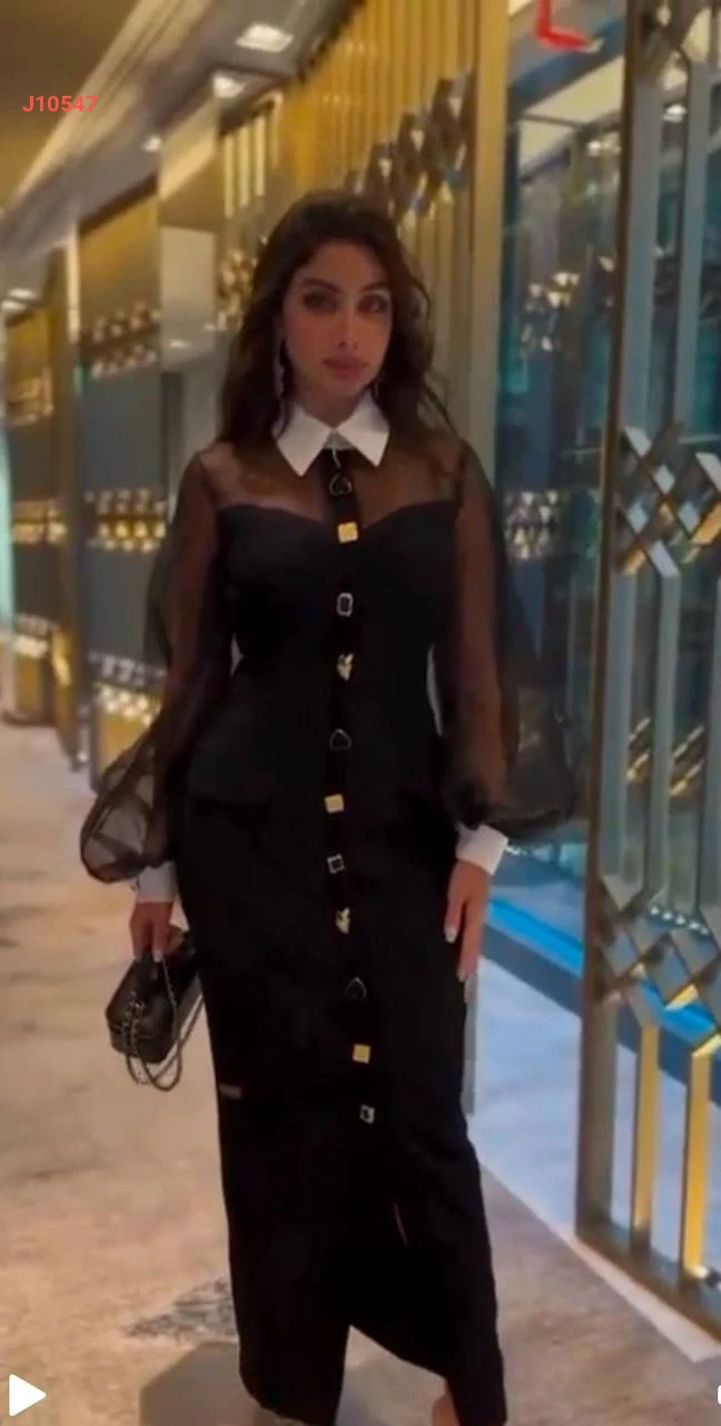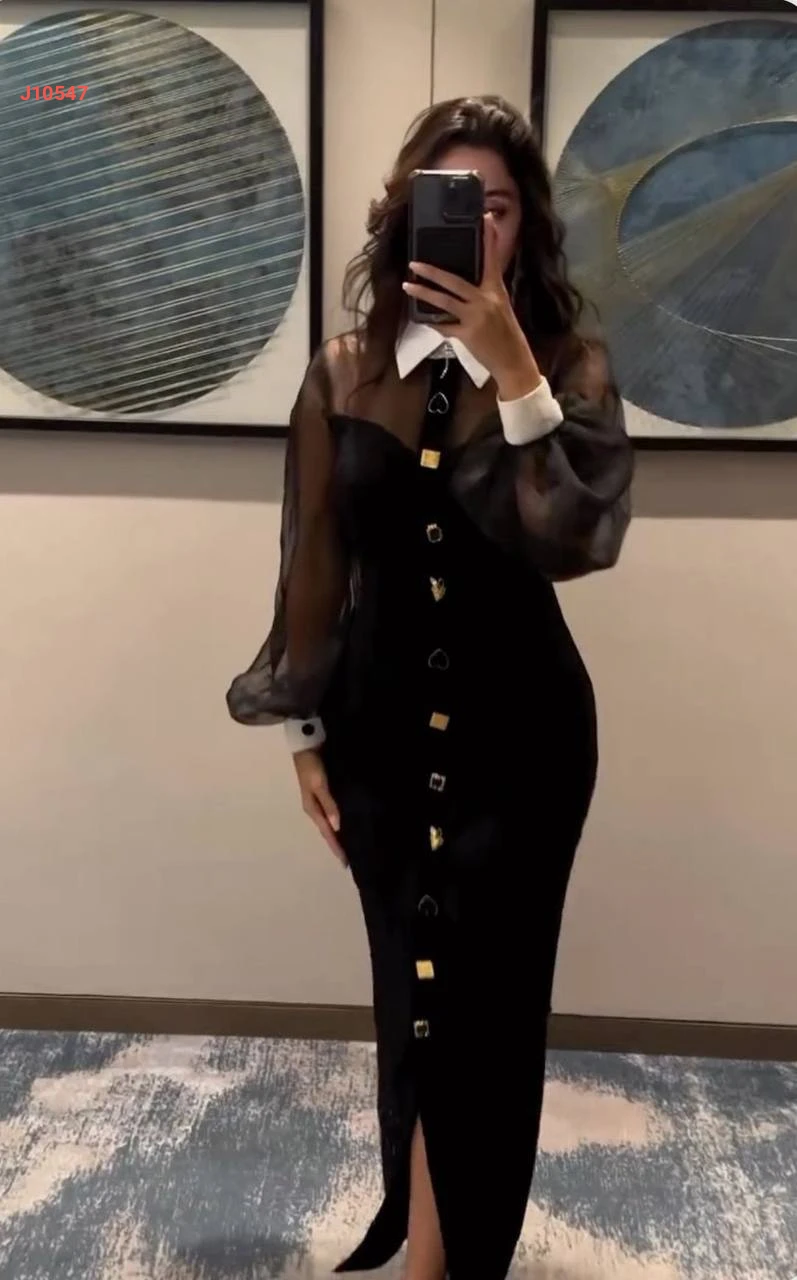 فستان طويل بأكمام بالون شفافة
