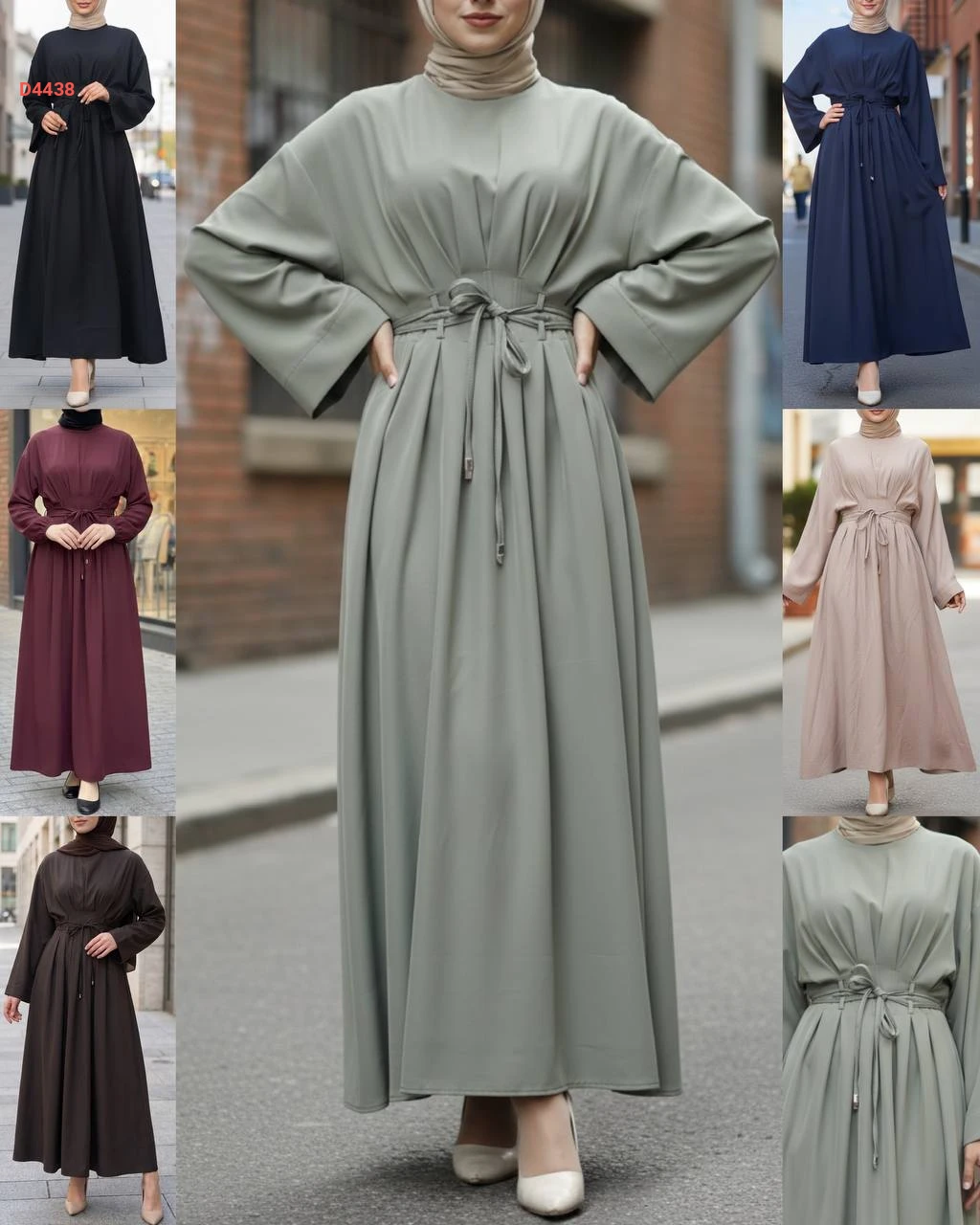 فستان طويل بأكمام واسعة وزنار