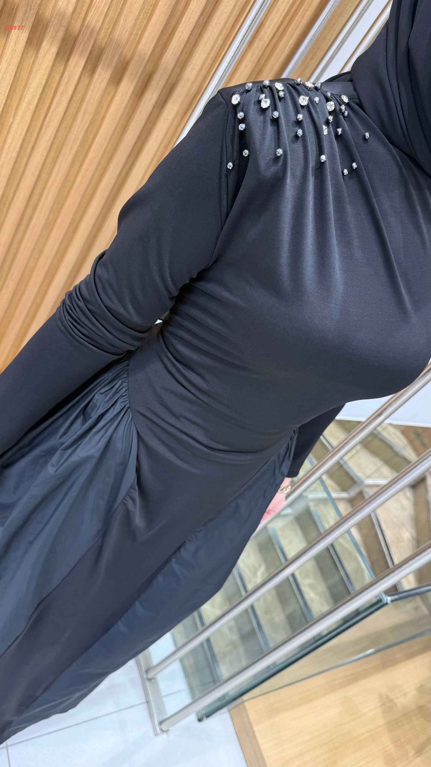 فستان طويل مخصر مع أحجار عالكتف