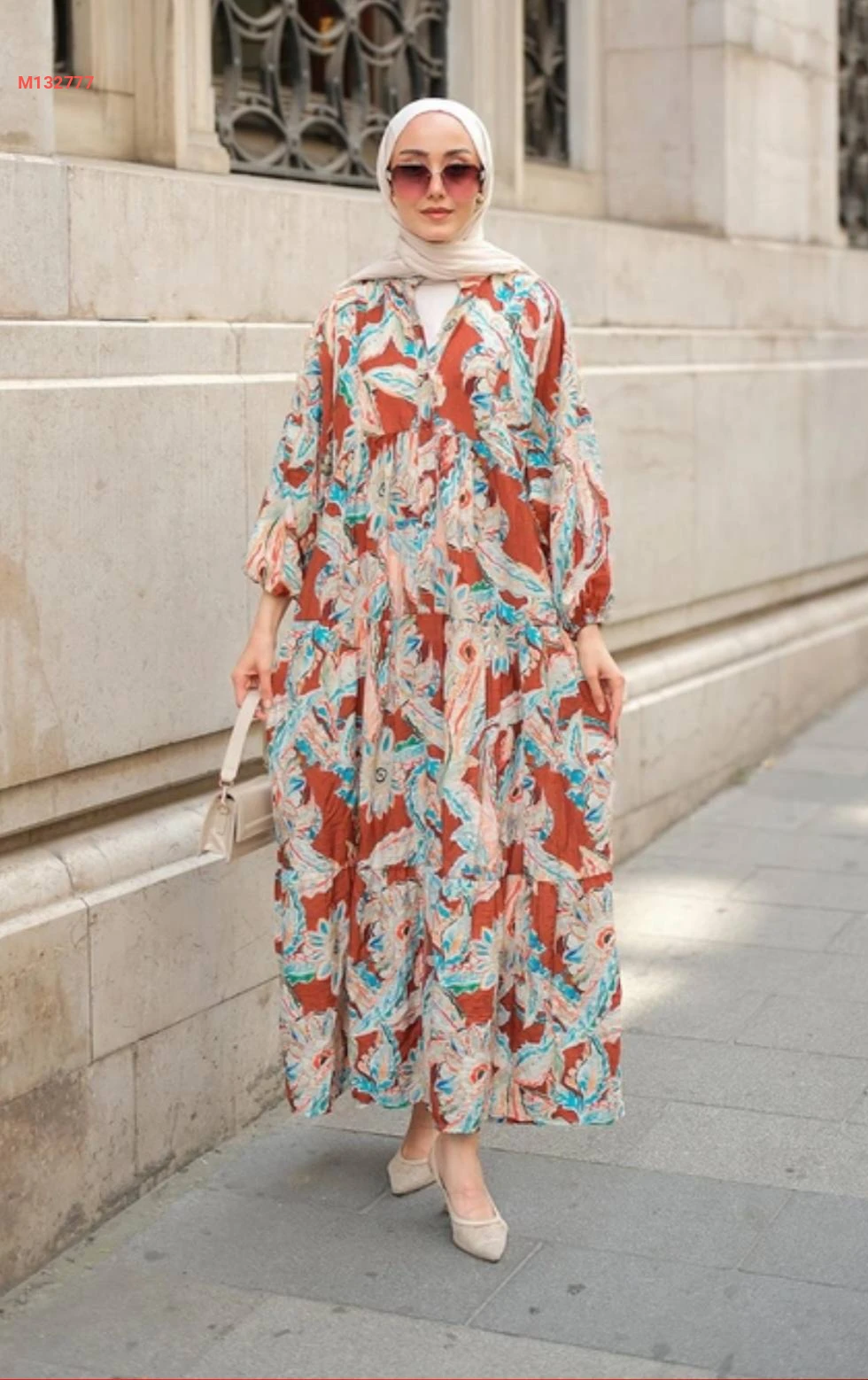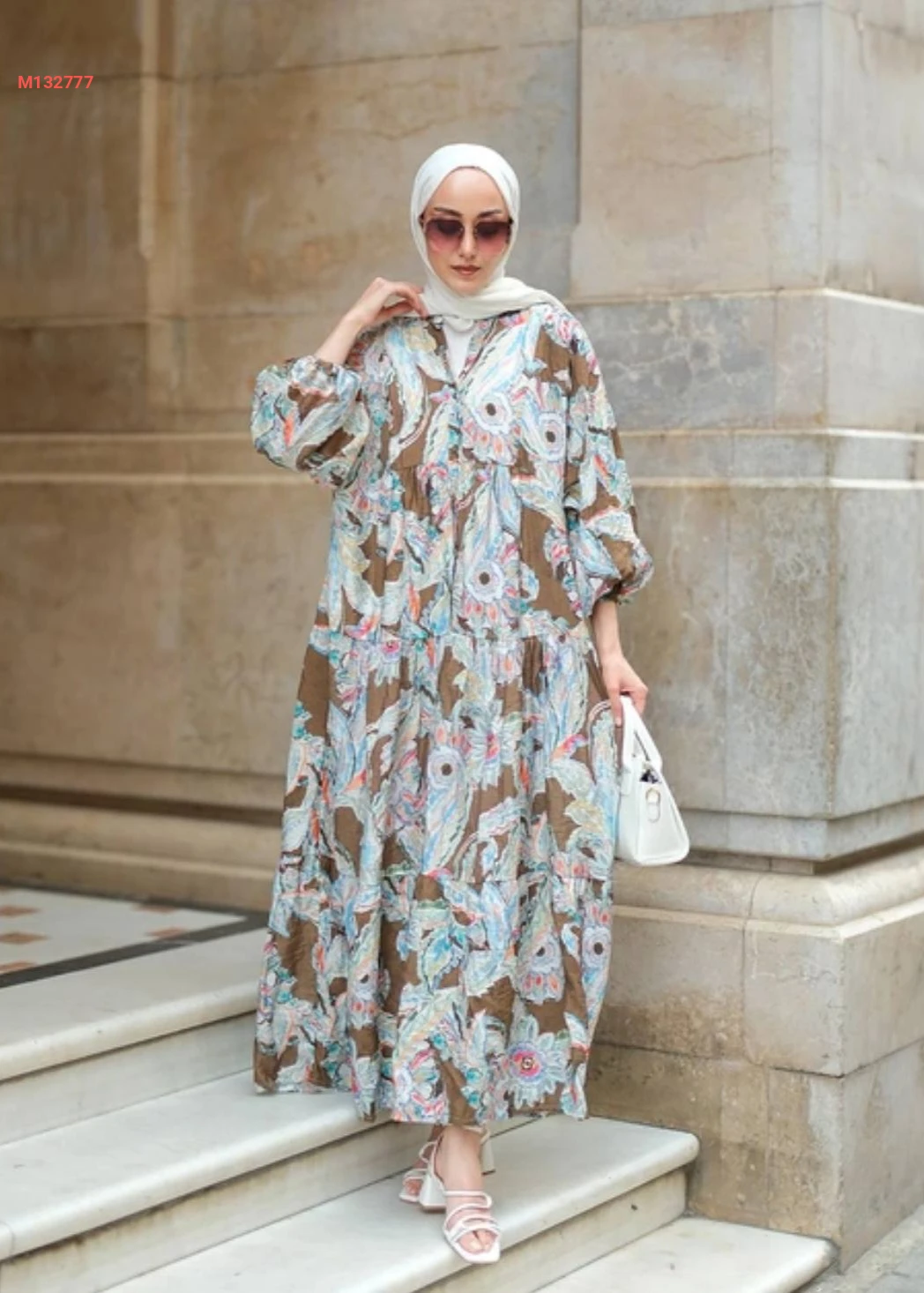 فستان طويل منقوش