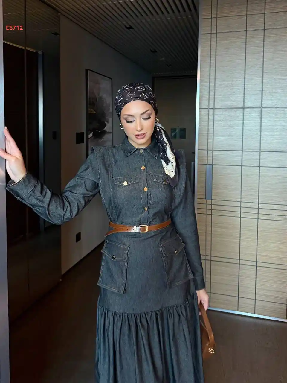 فستان جينز طويل بأزرار
