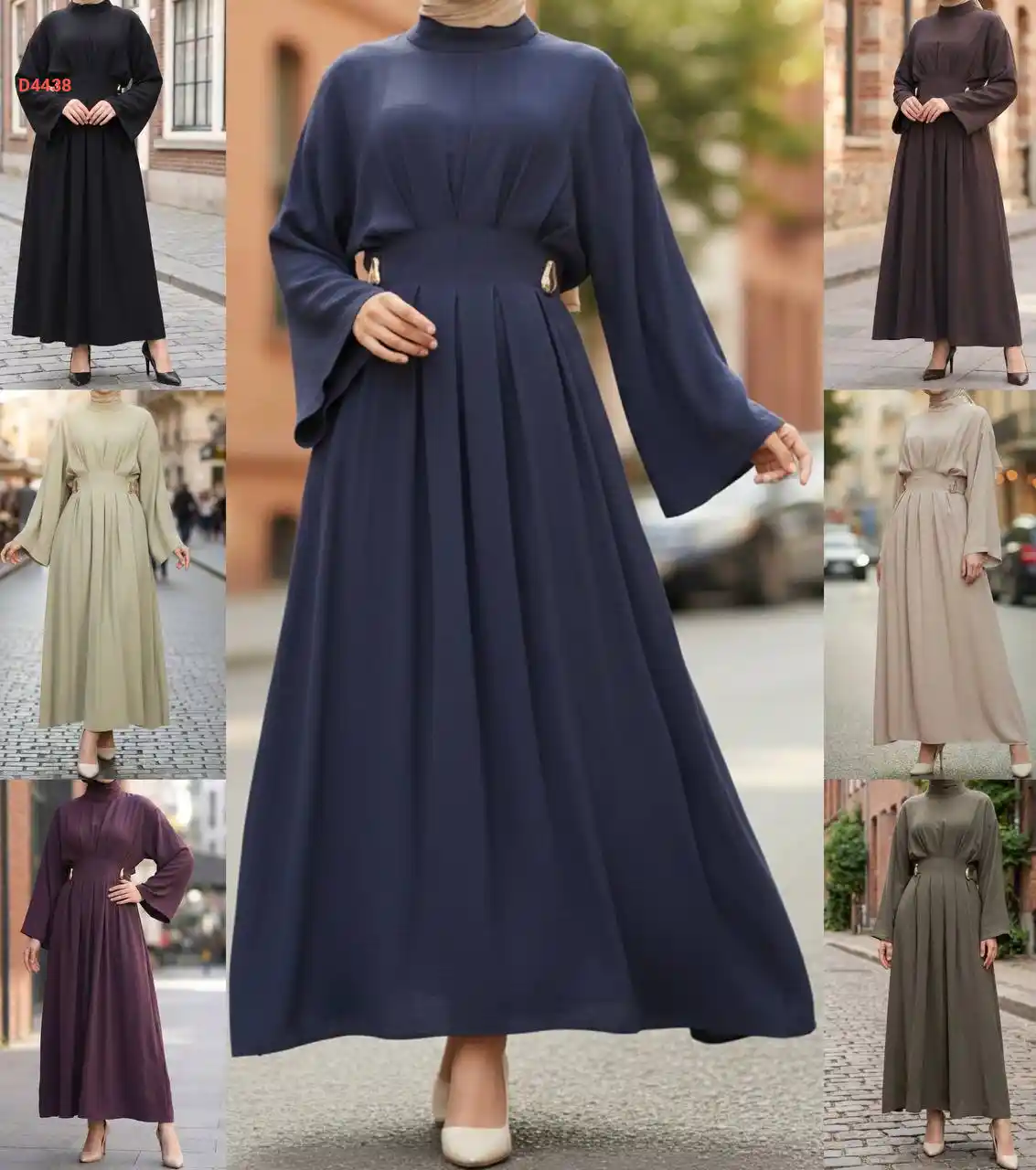 فستان طويل مخصر بطيات