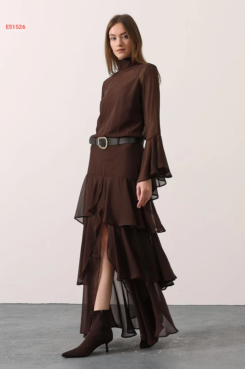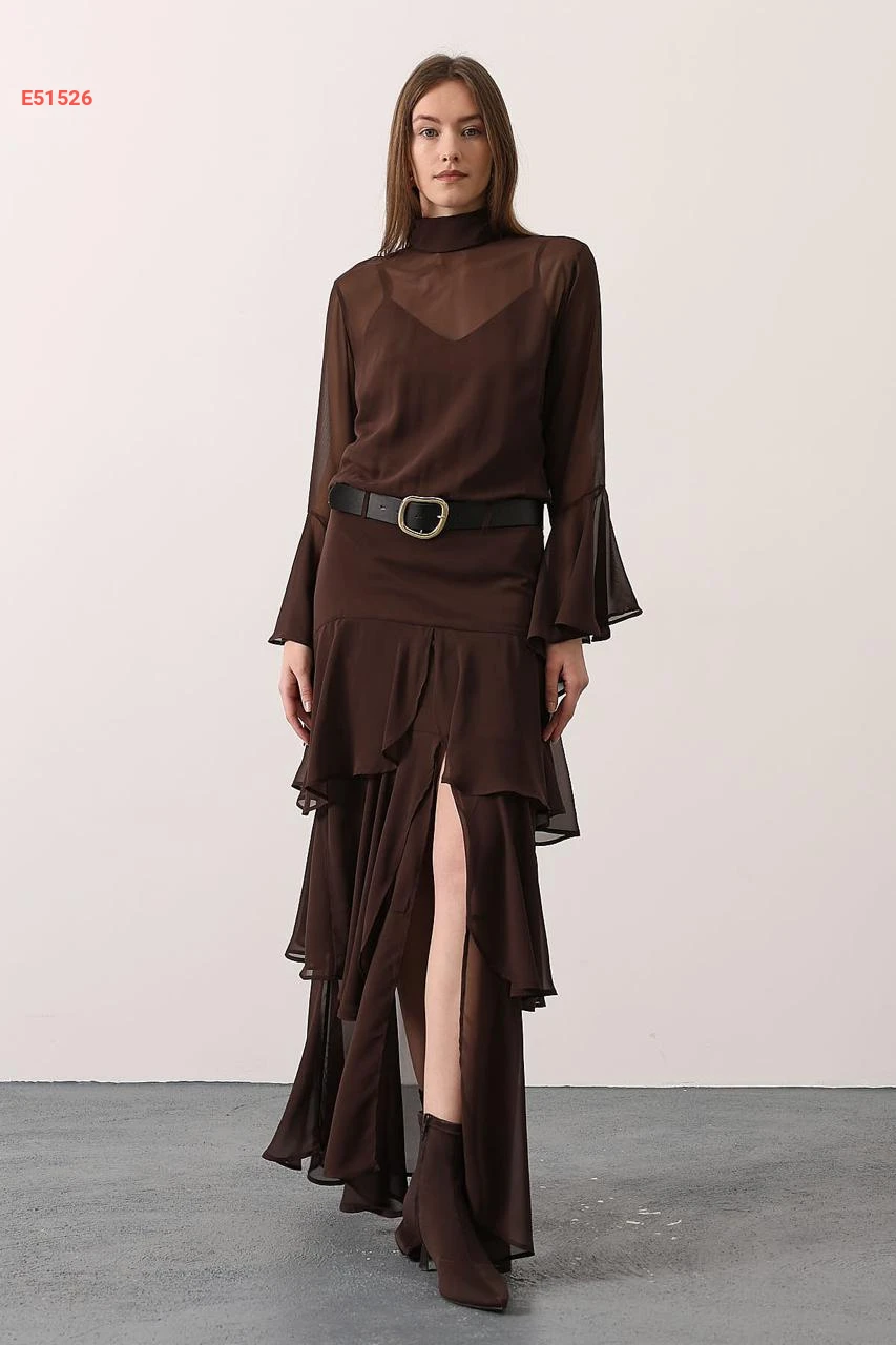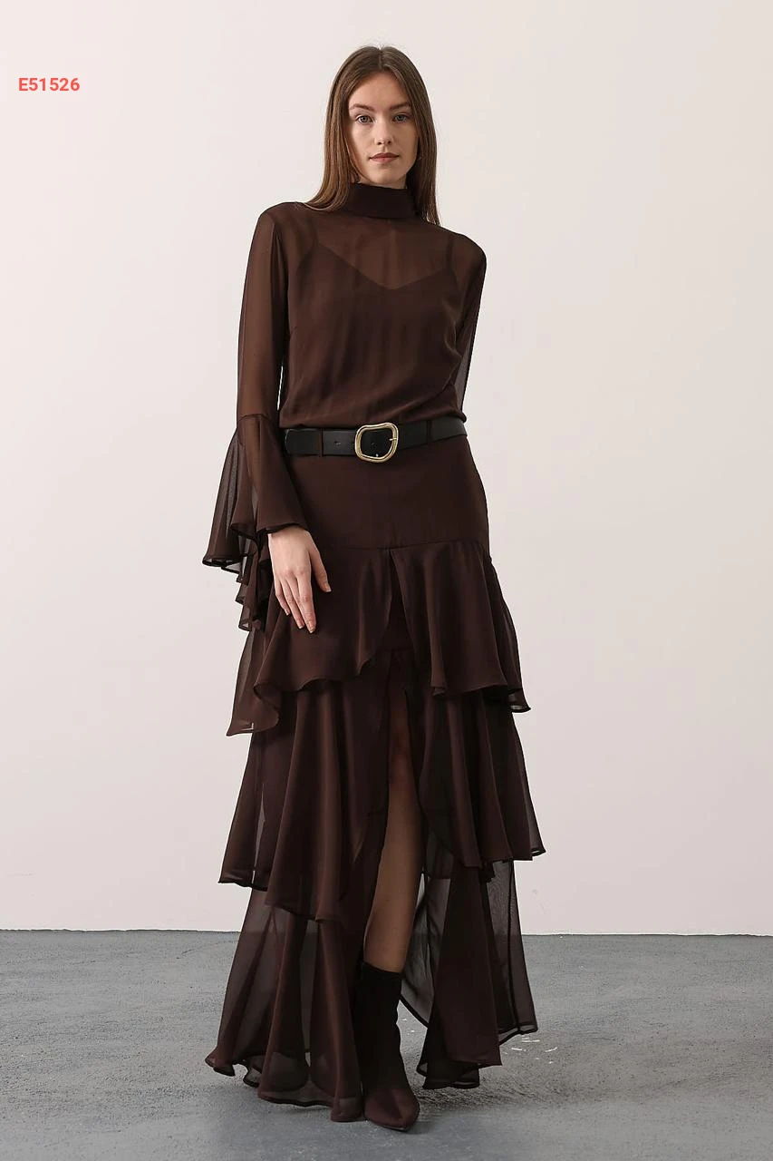 فستان طويل شيفون مكشكش