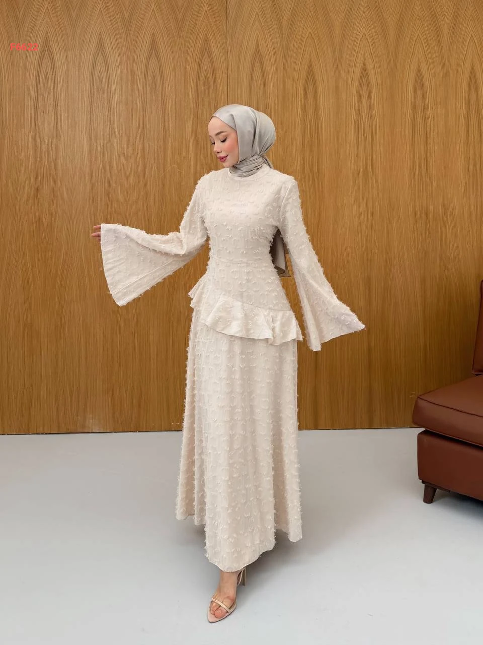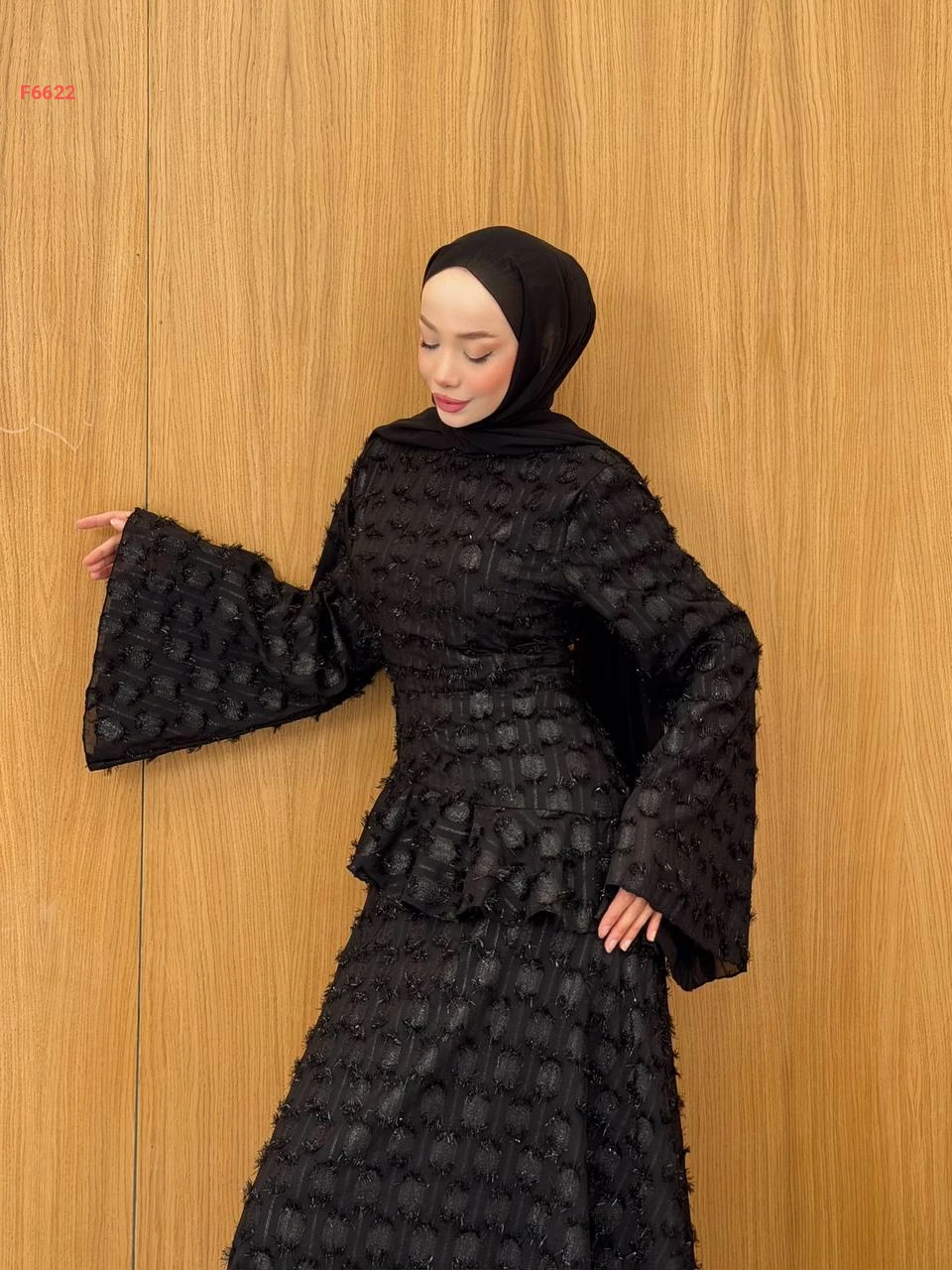فستان طويل لميع بأكمام كلوش