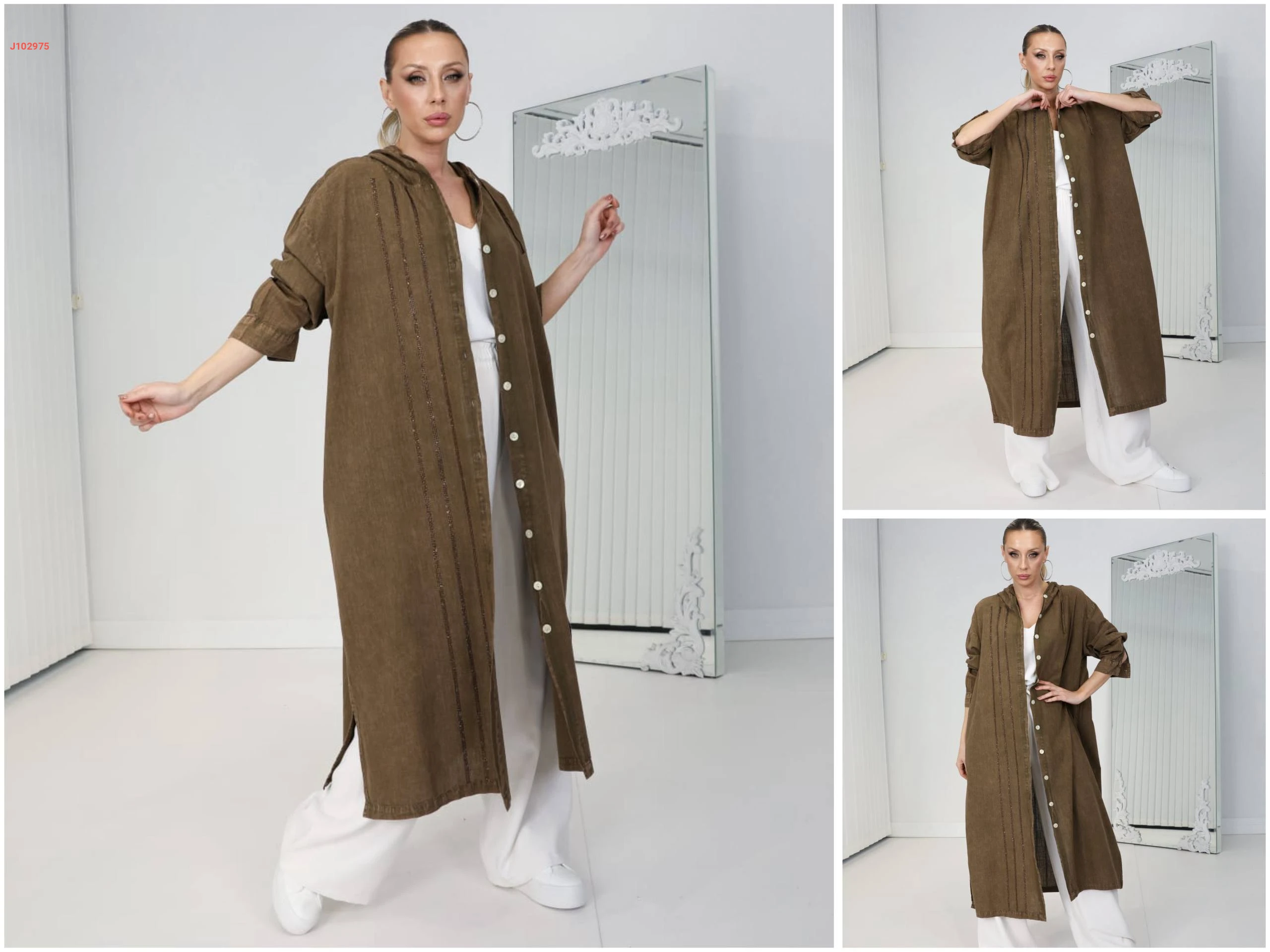 قميص طويل بأزرار مع غطاء رأس
