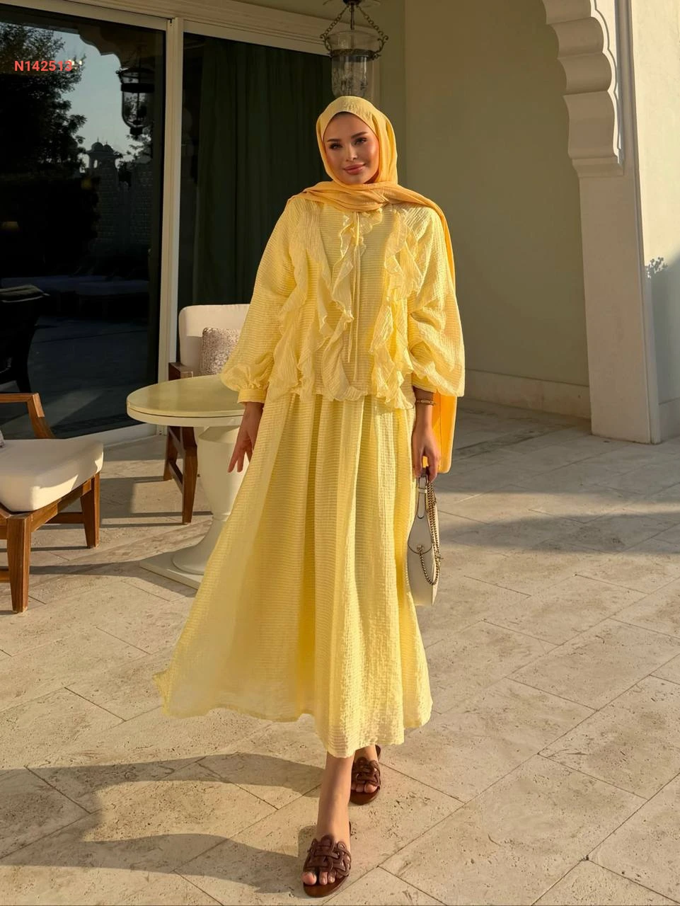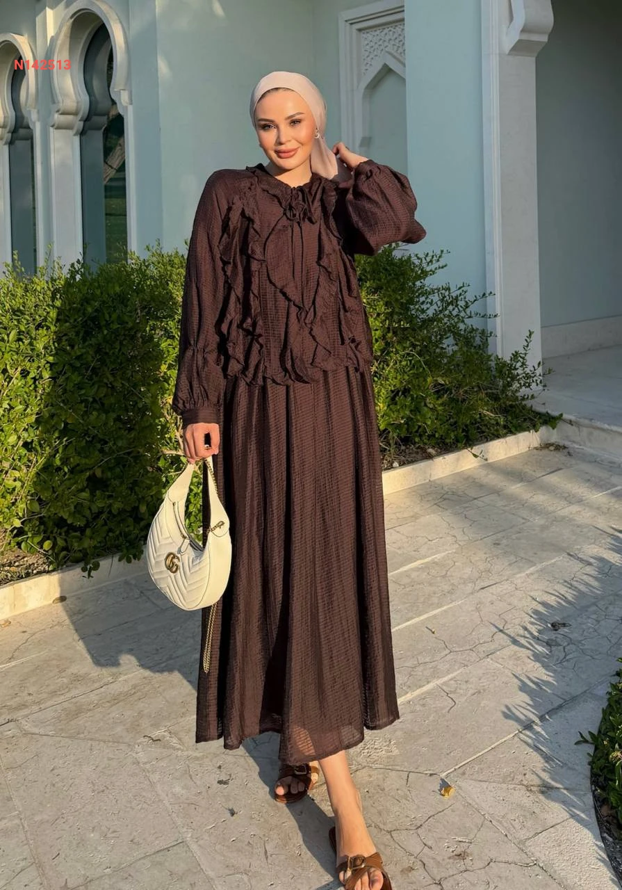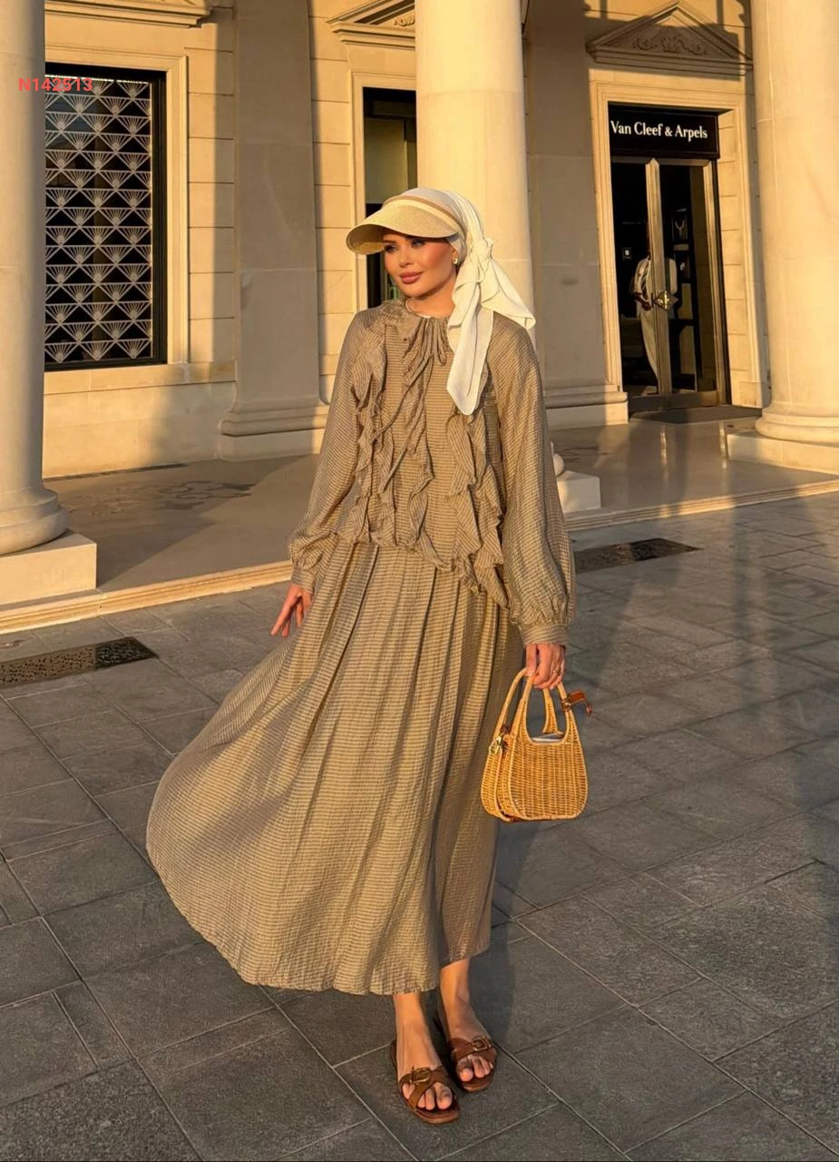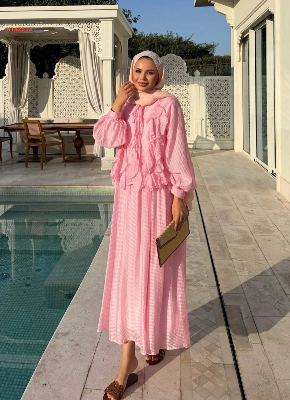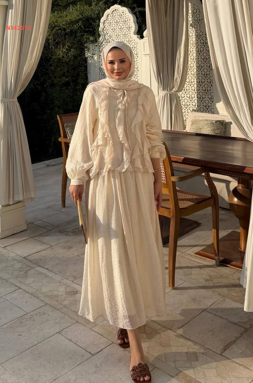 طقم تنورة طويل وبلوزة كشكش