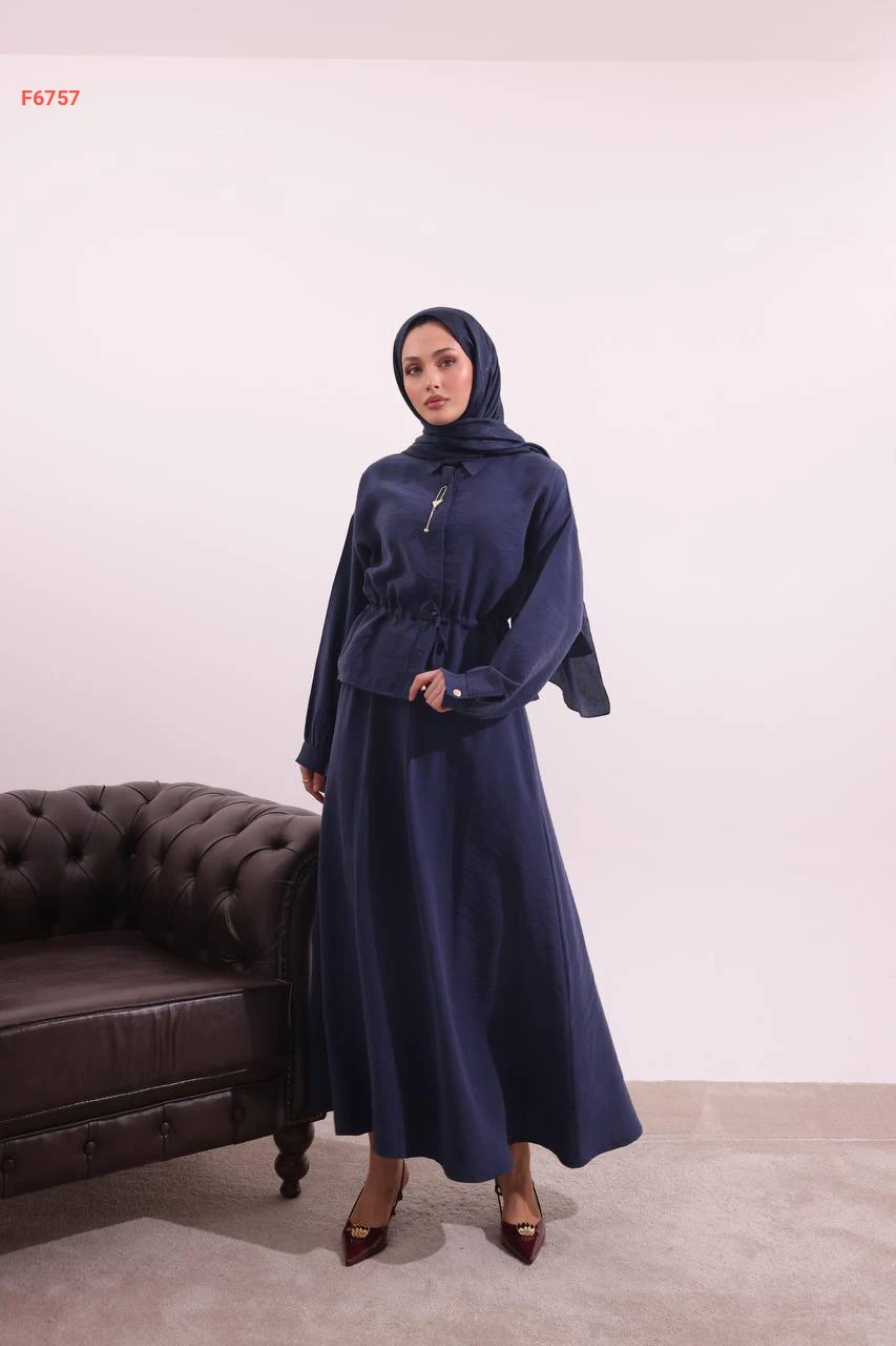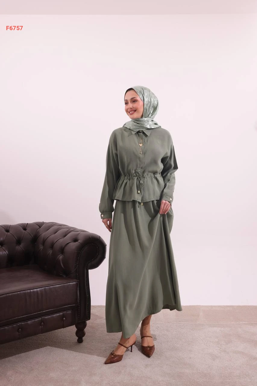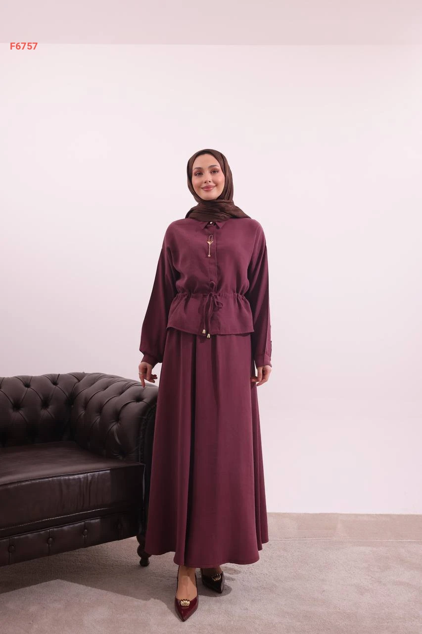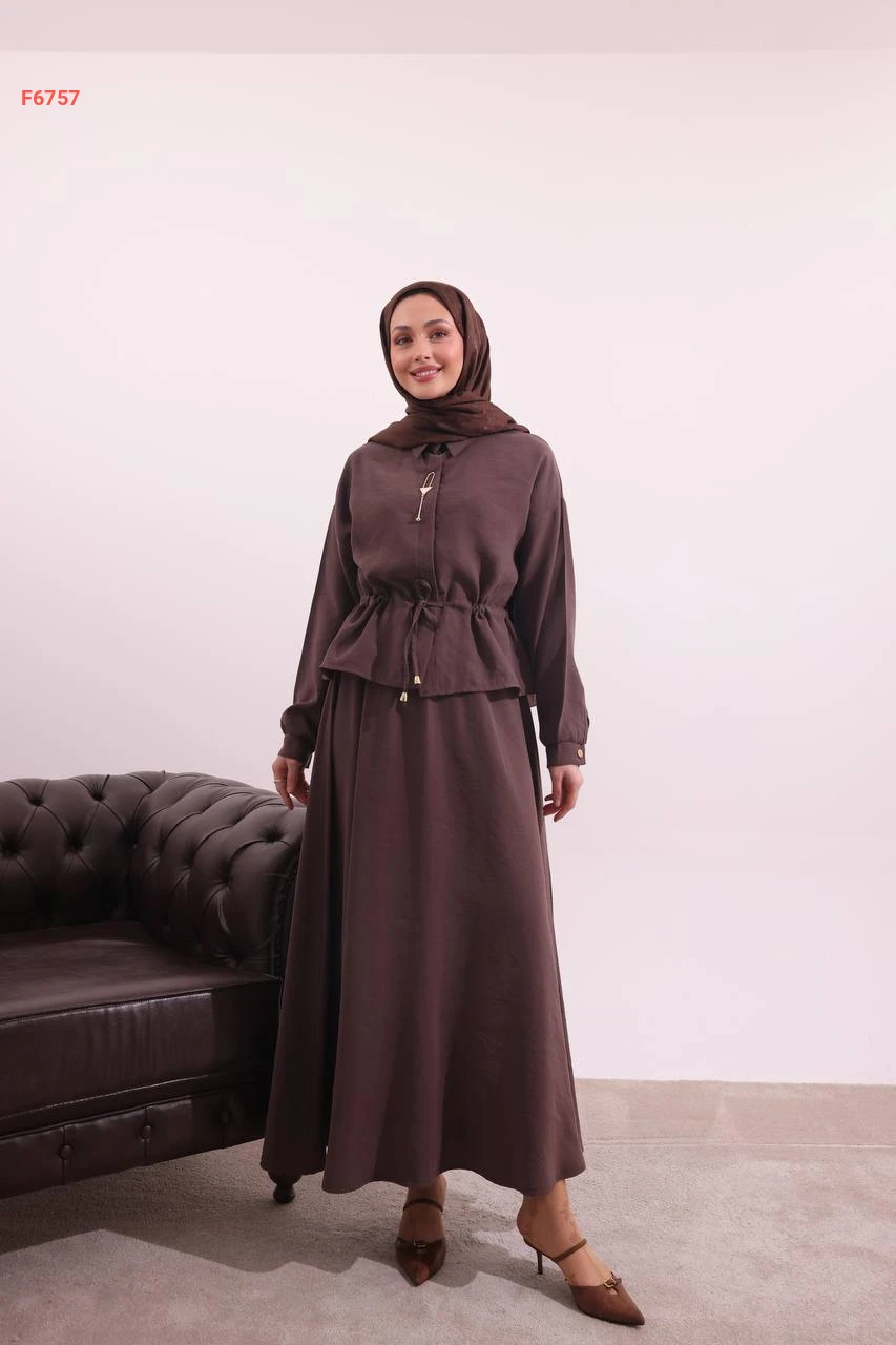 طقم تنورة طويل وقميص ببروش