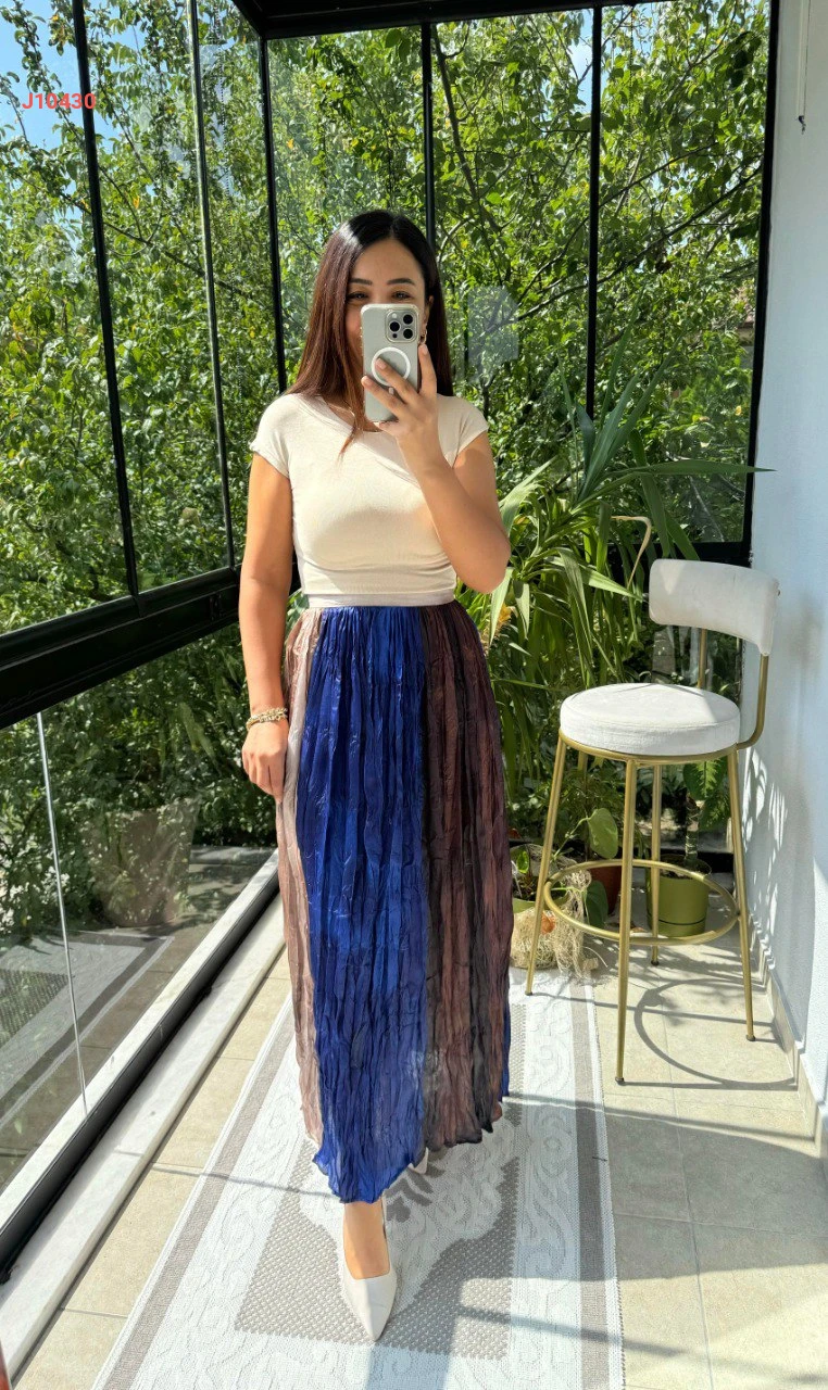 تنورة طويلة ملونة بتفاصيل مجعدة