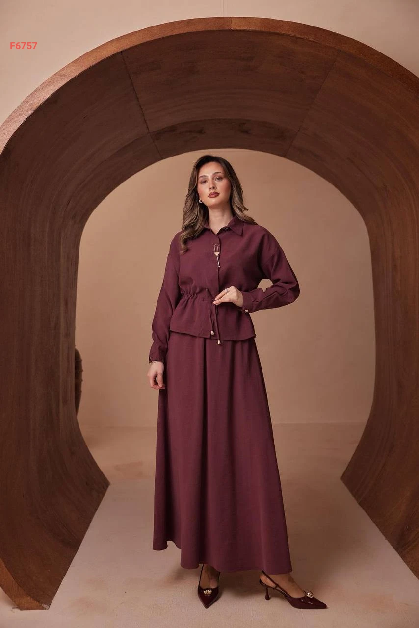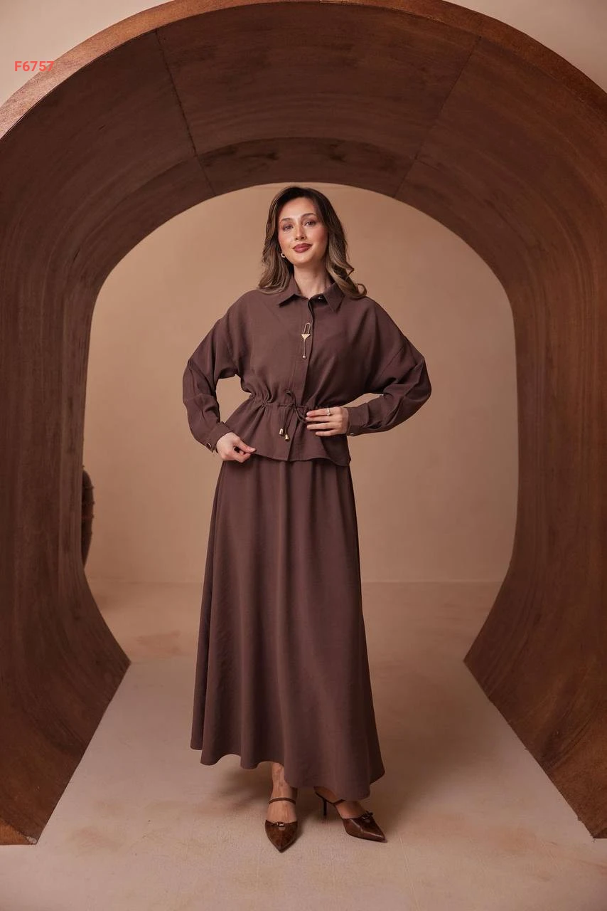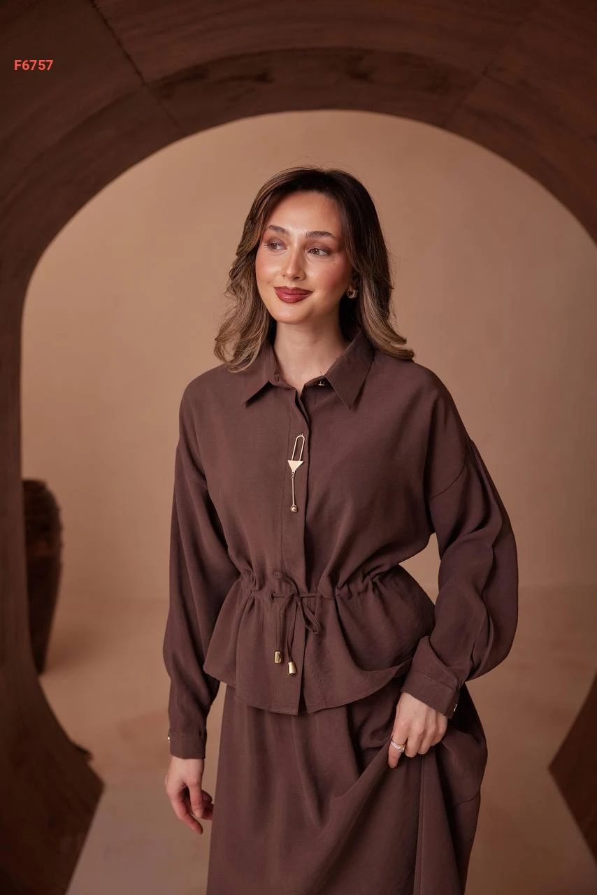 طقم تنورة طويل وقميص ببروش