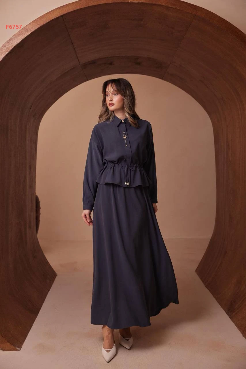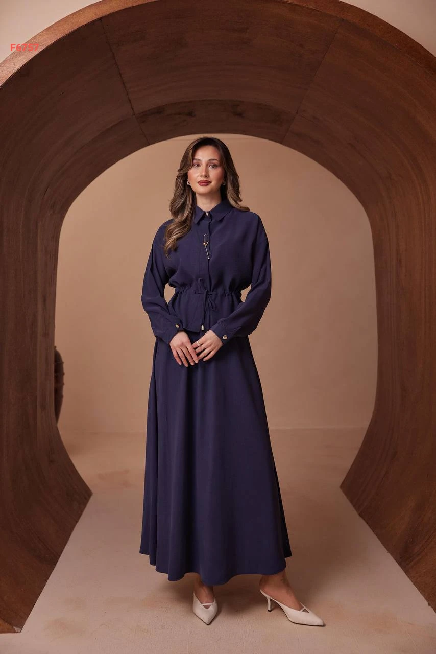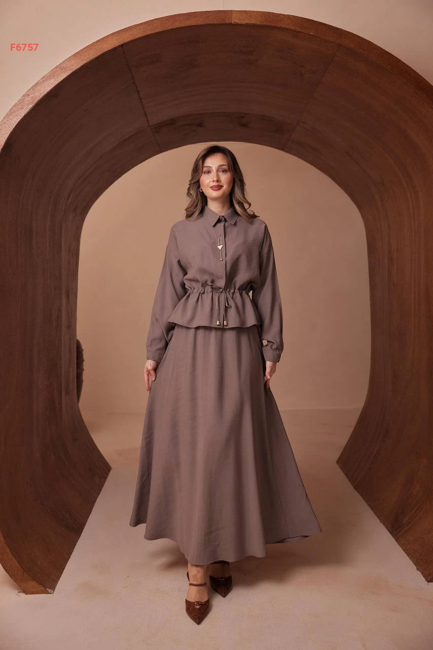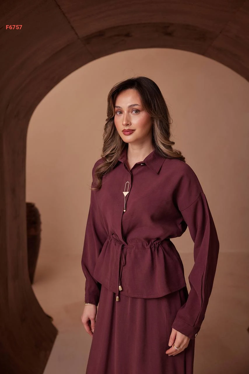 طقم تنورة طويل وقميص ببروش