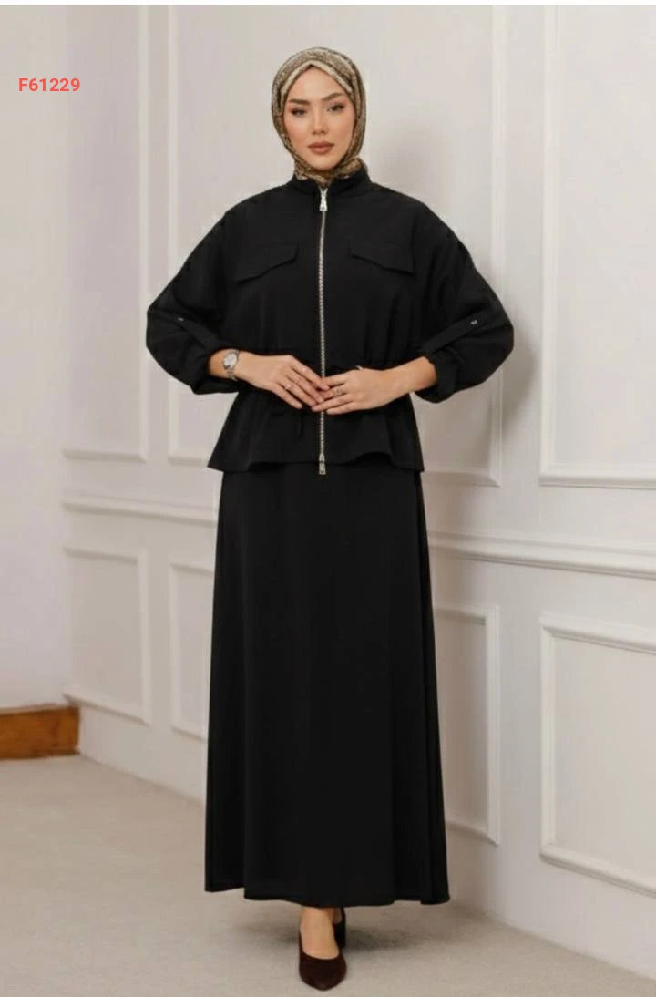 طقم تنورة طويل وجاكيت بسحاب