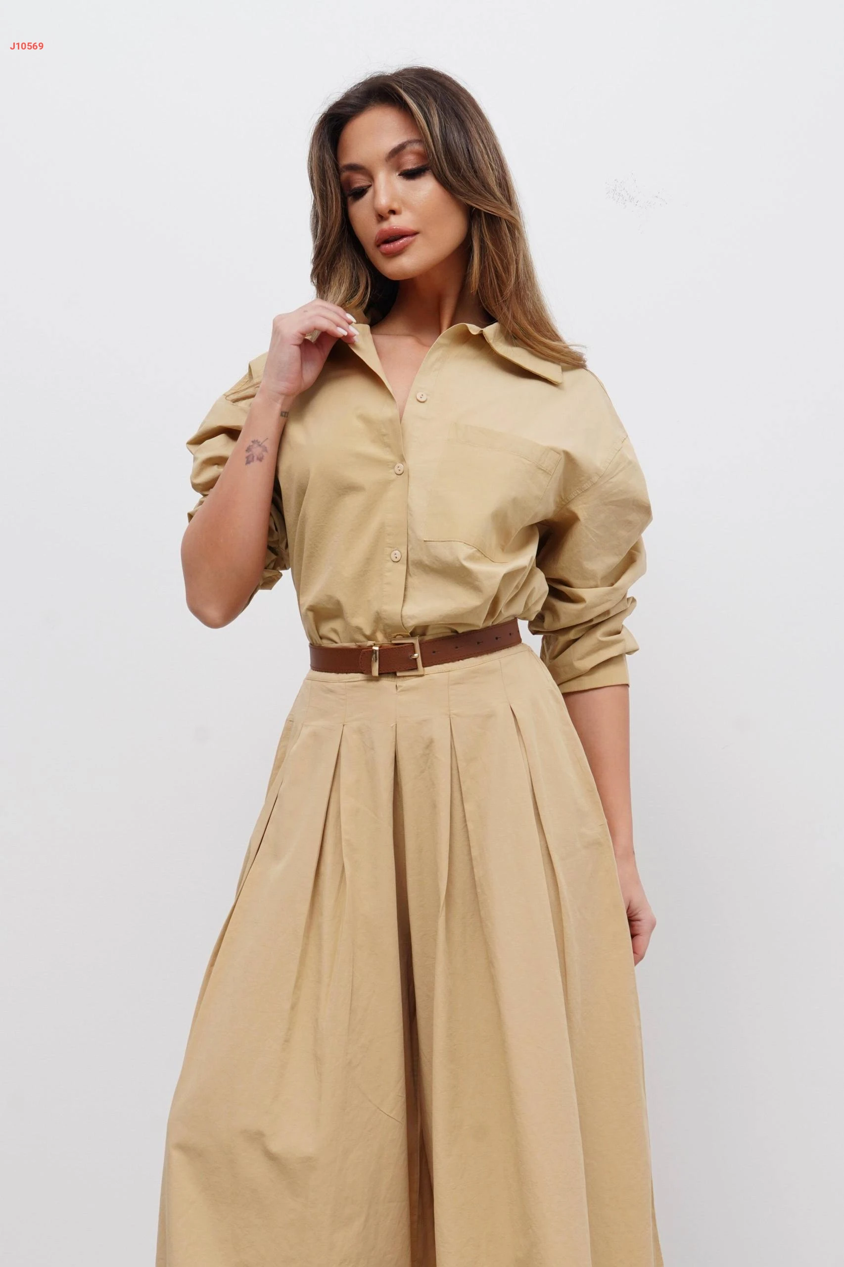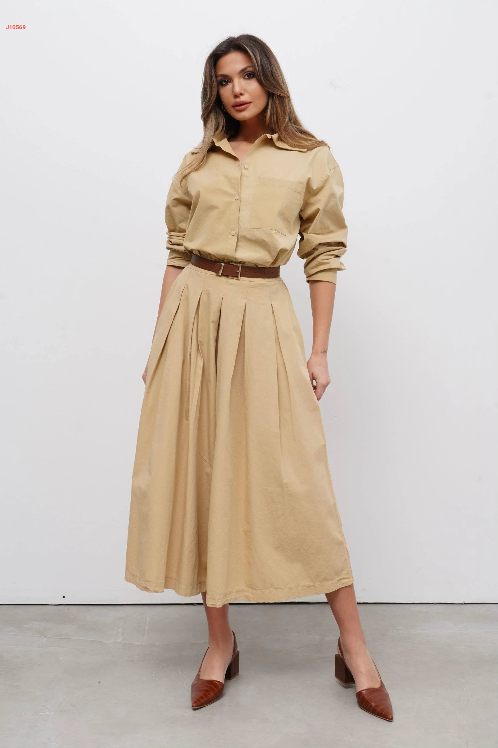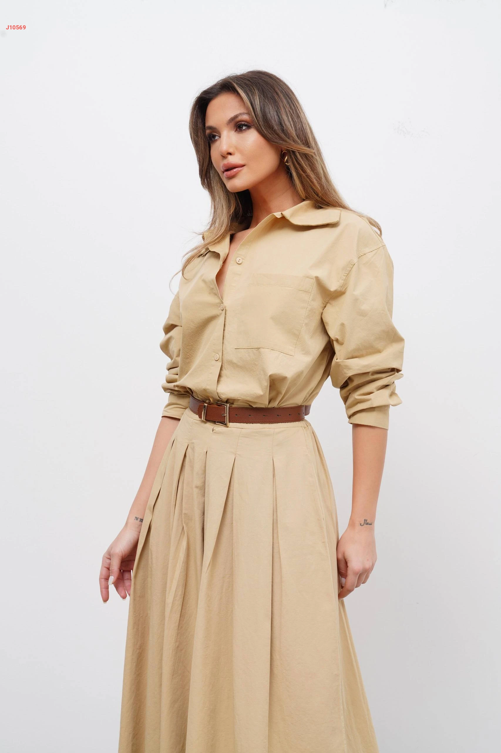 طقم تنورة طويلة مع قميص