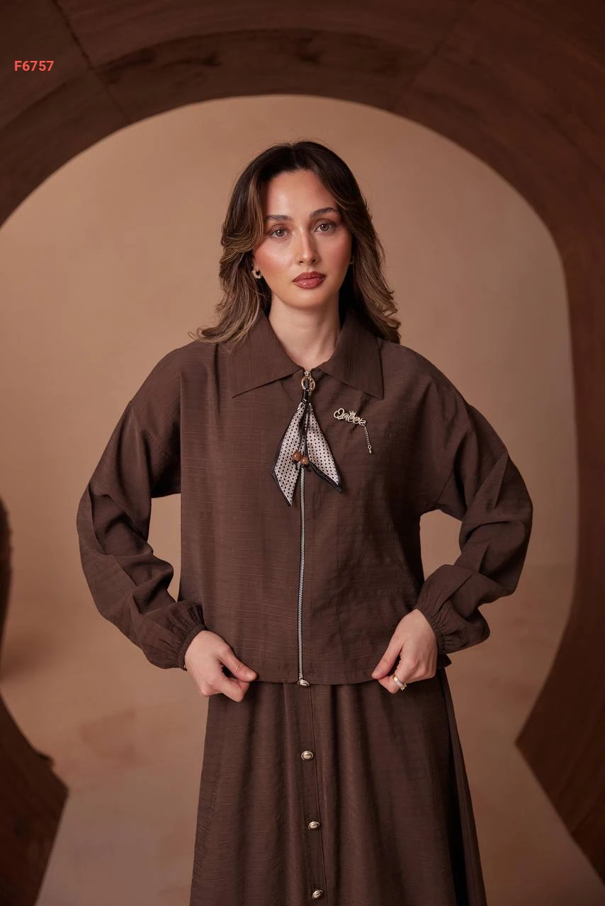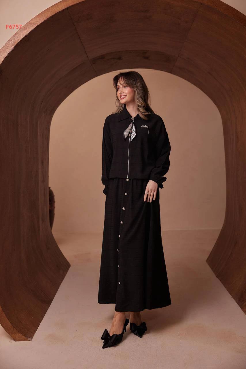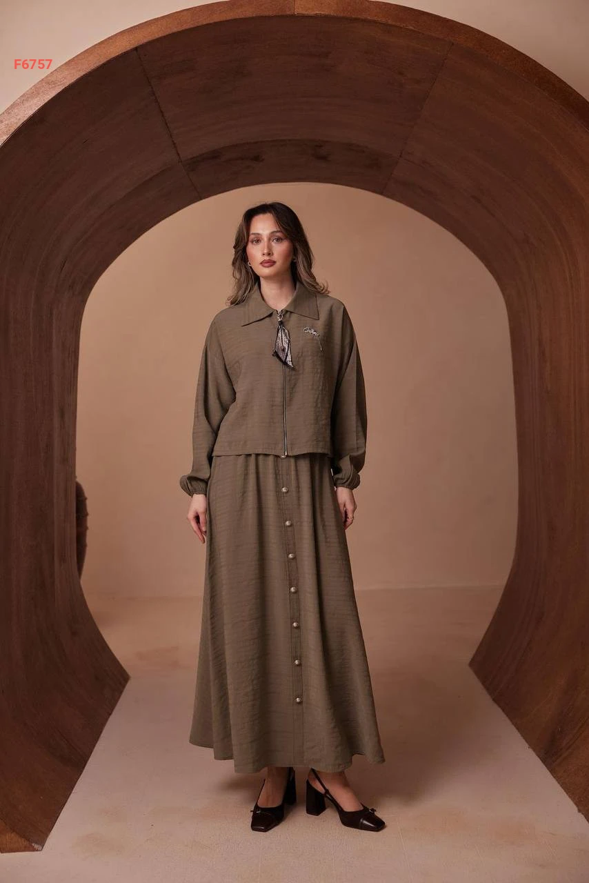 طقم تنورة طويل وجاكيت بسحاب