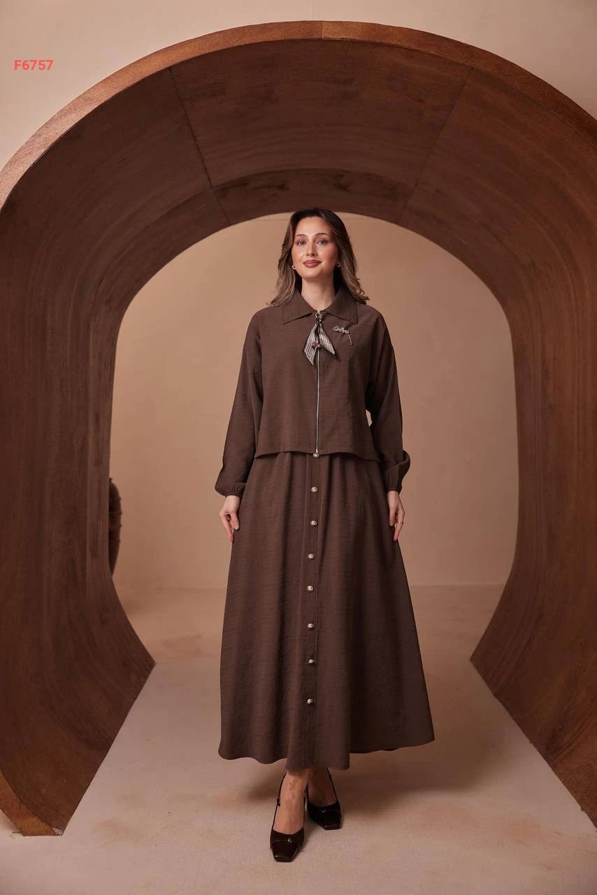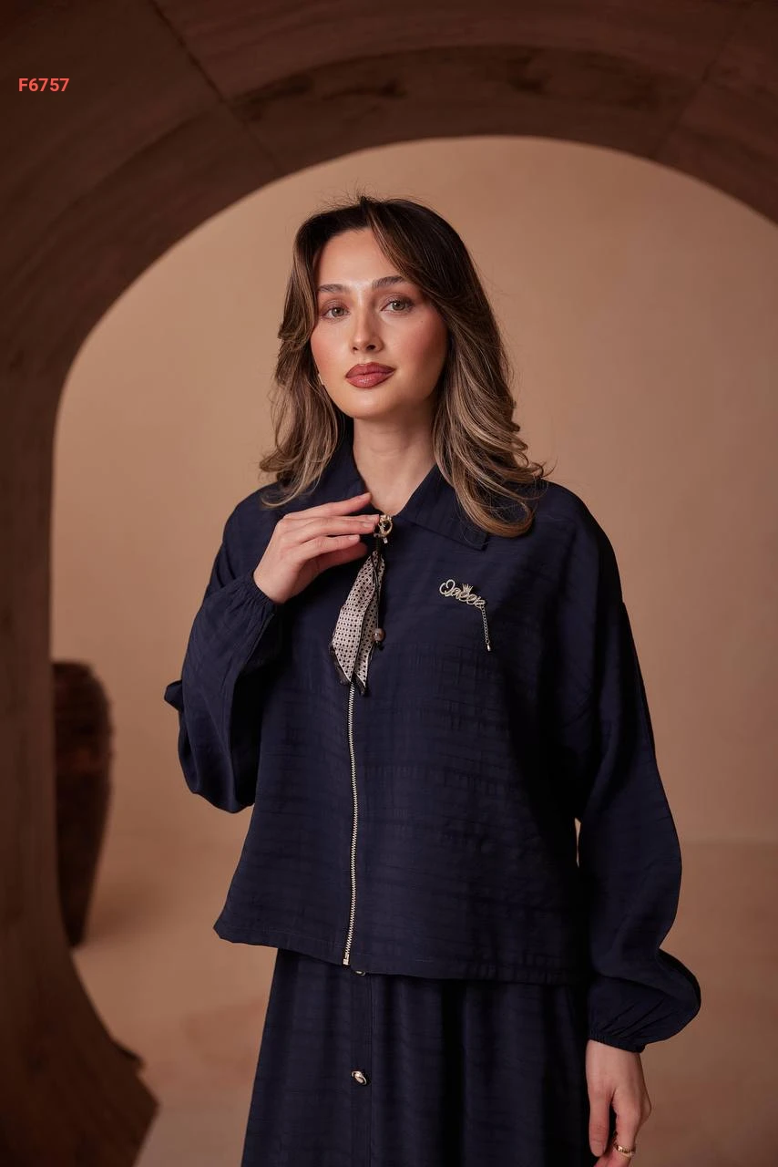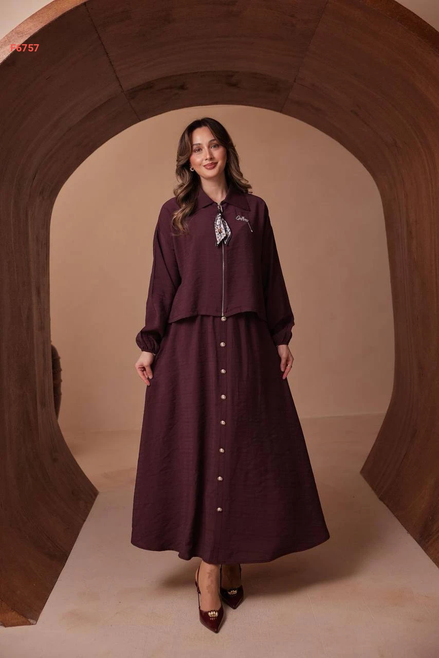 طقم تنورة طويل وجاكيت بسحاب