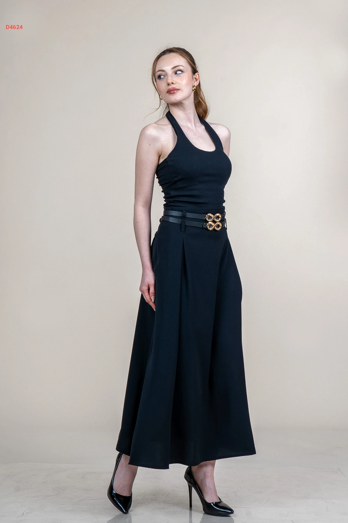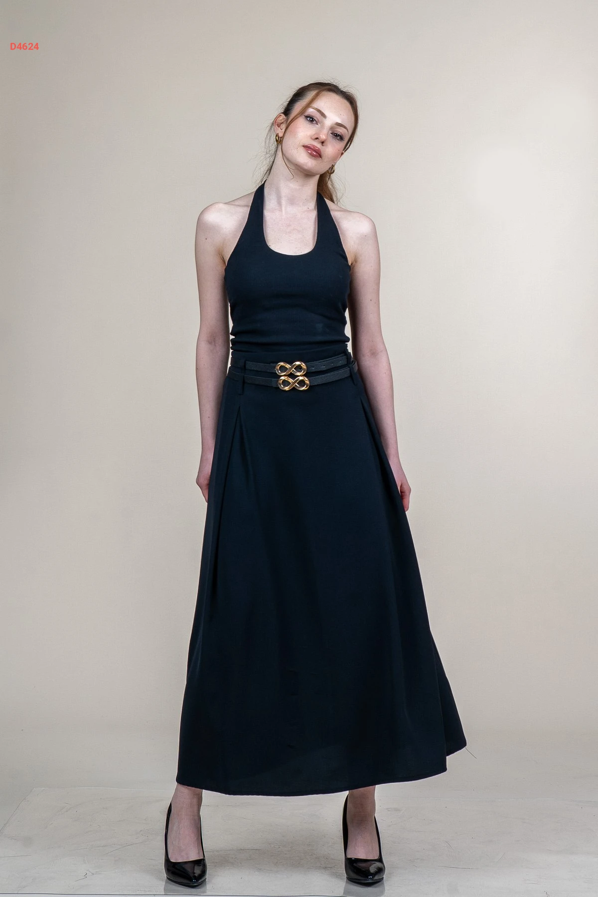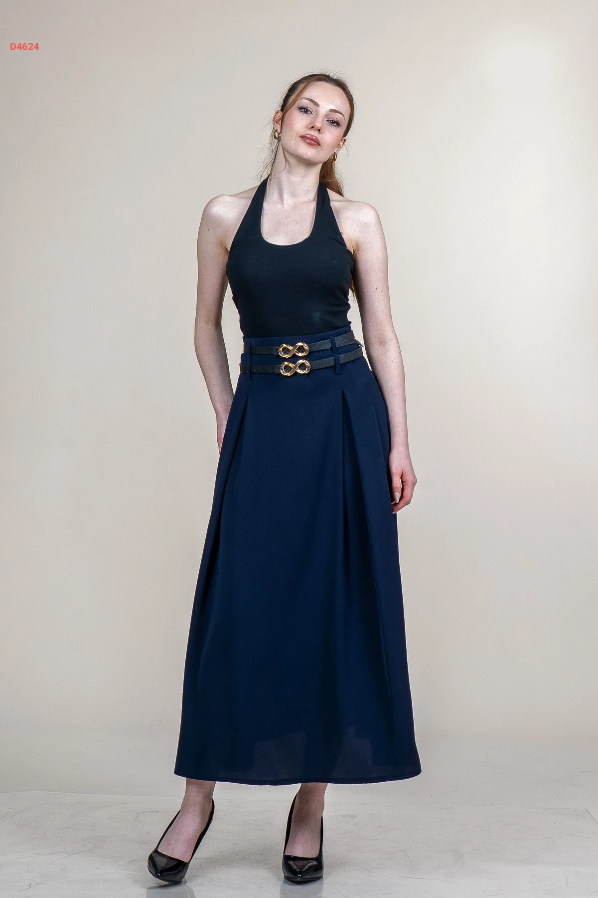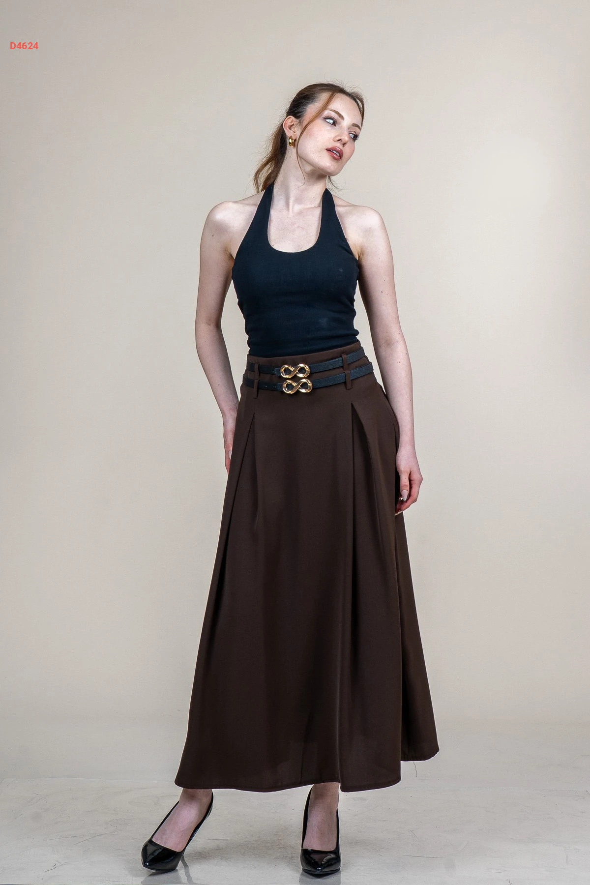 تنورة طويلة مع حزام مزدوج