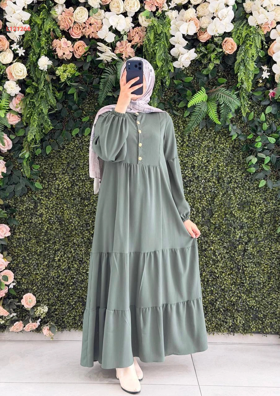 فستان صيفي طويل بأزرار نصفية