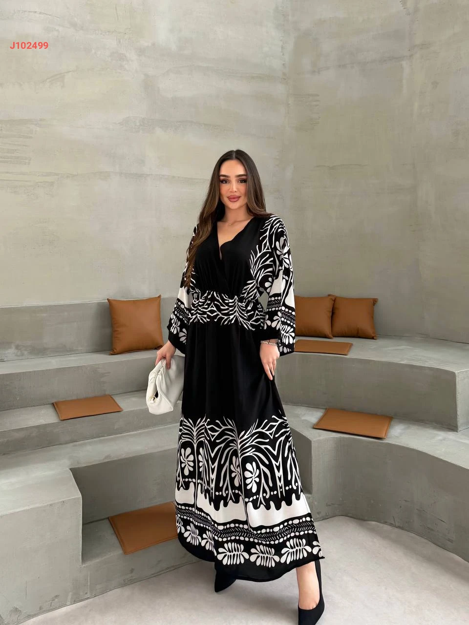 فستان طويل منقوش لونين