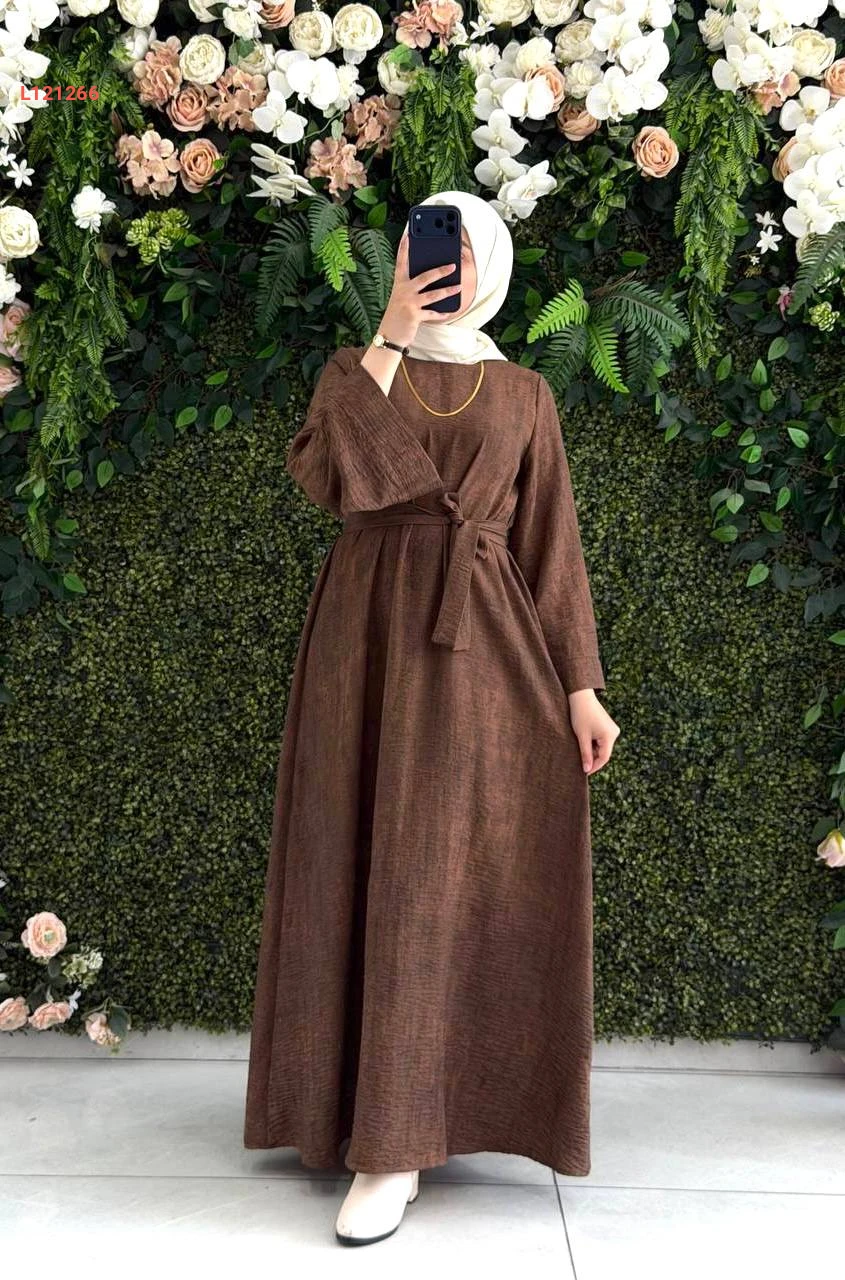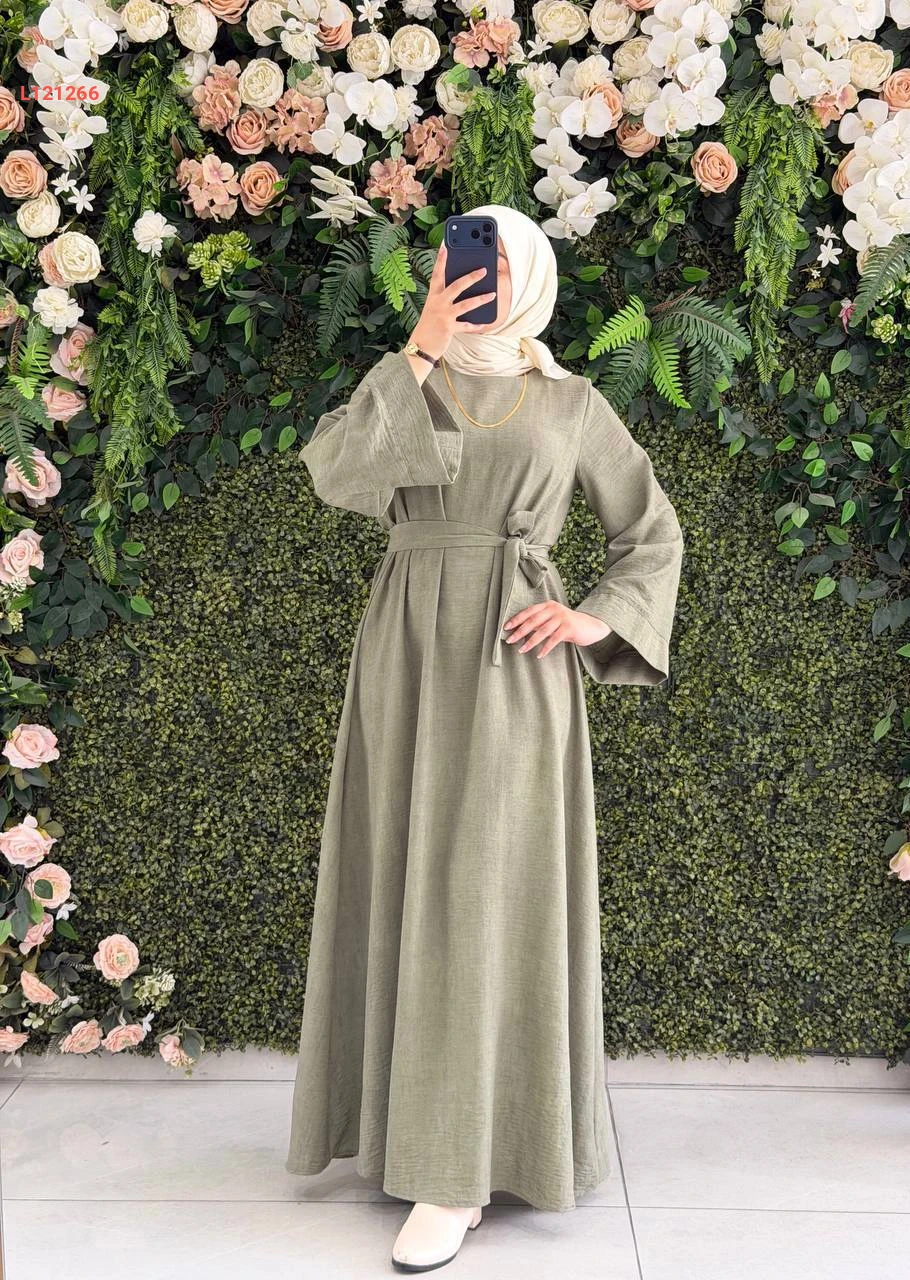 فستان طويل واسع مع زنار
