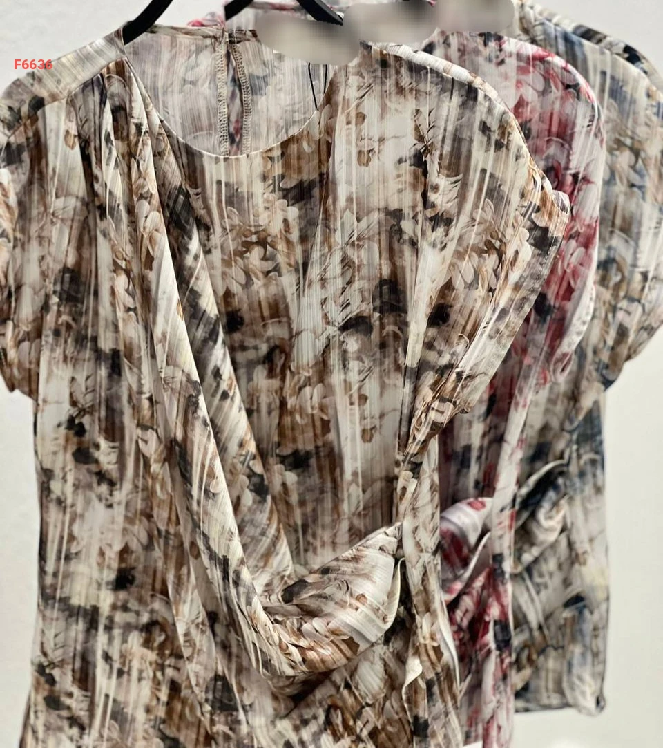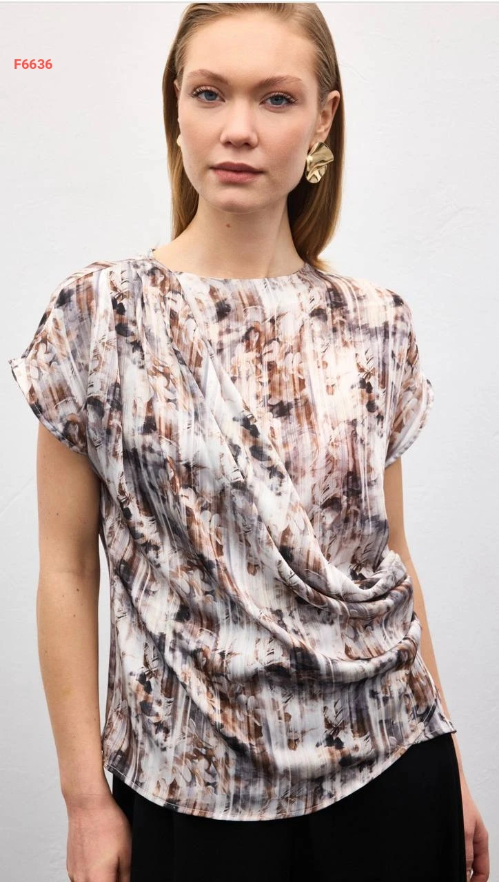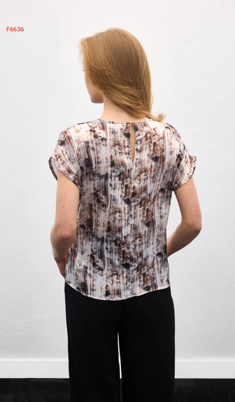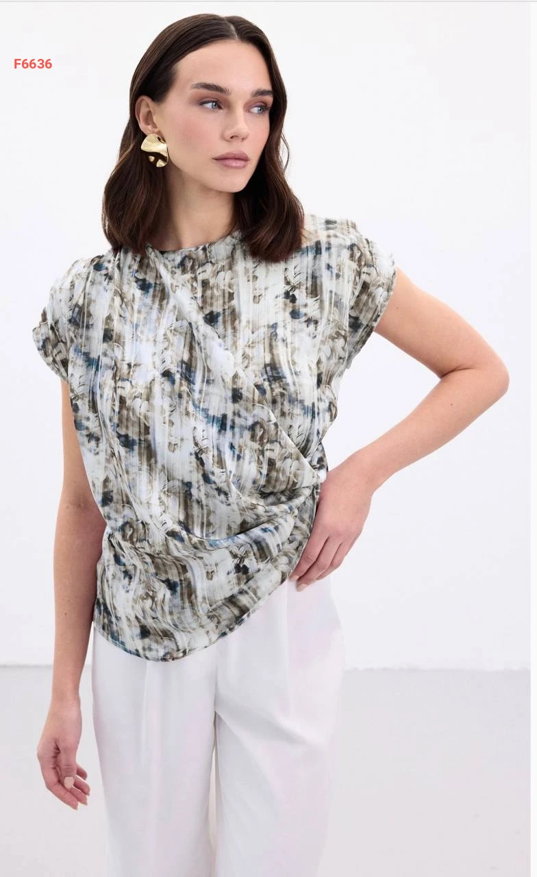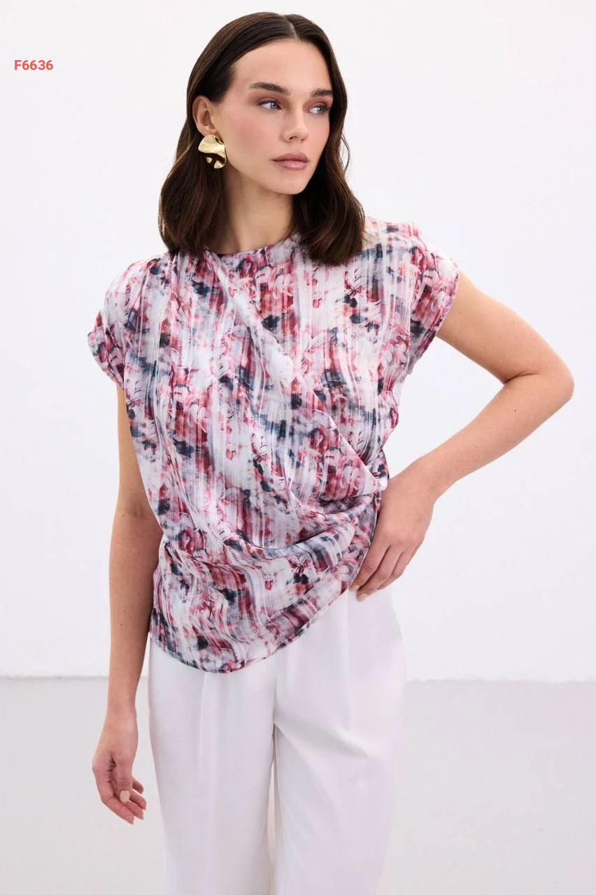 بلوزة منقوشة بتفاصيل مجمعة