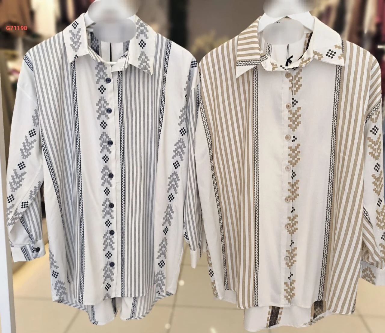 قميص منقوش مع تفاصيل مقلمة
