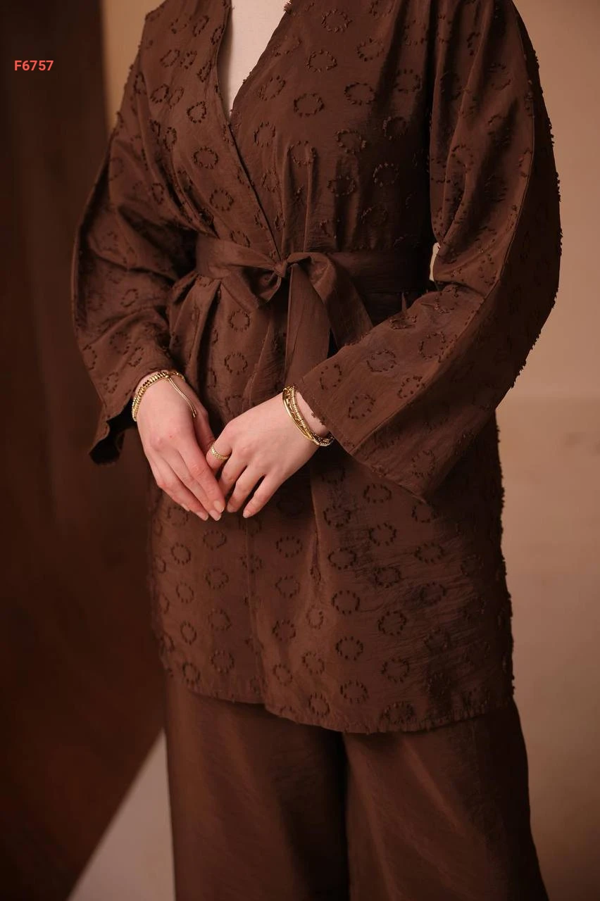 طقم بنطال وجاكيت منقوش بزنار