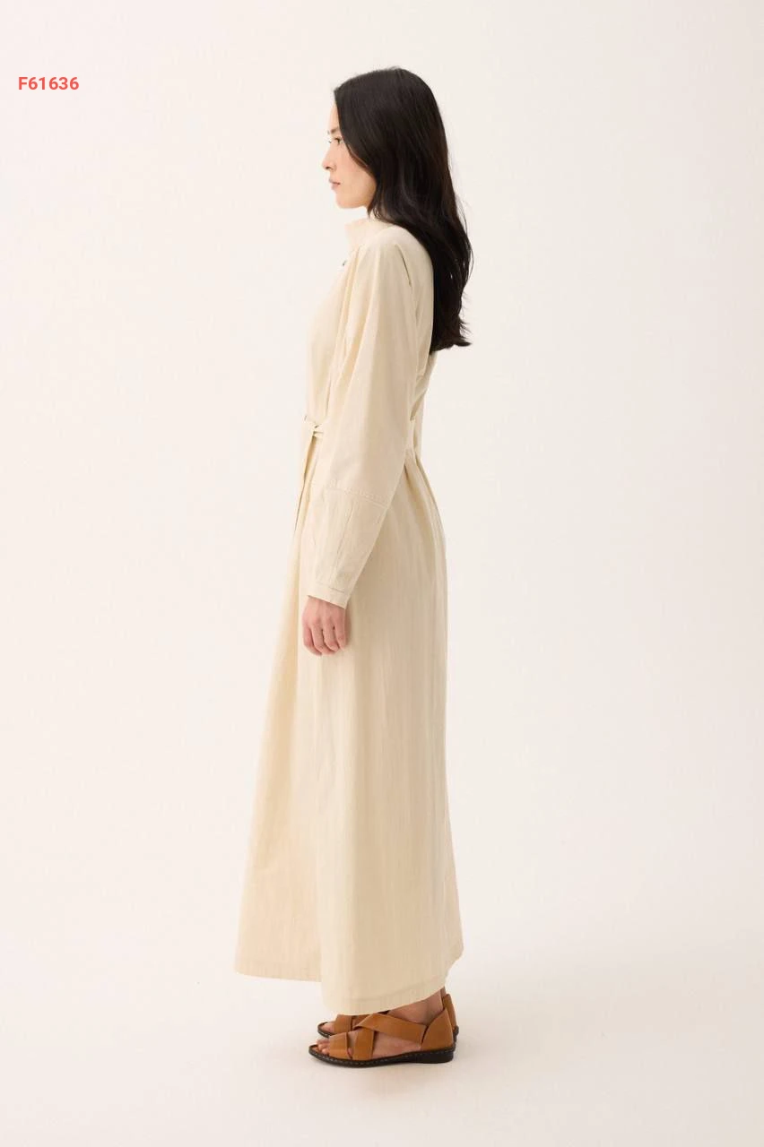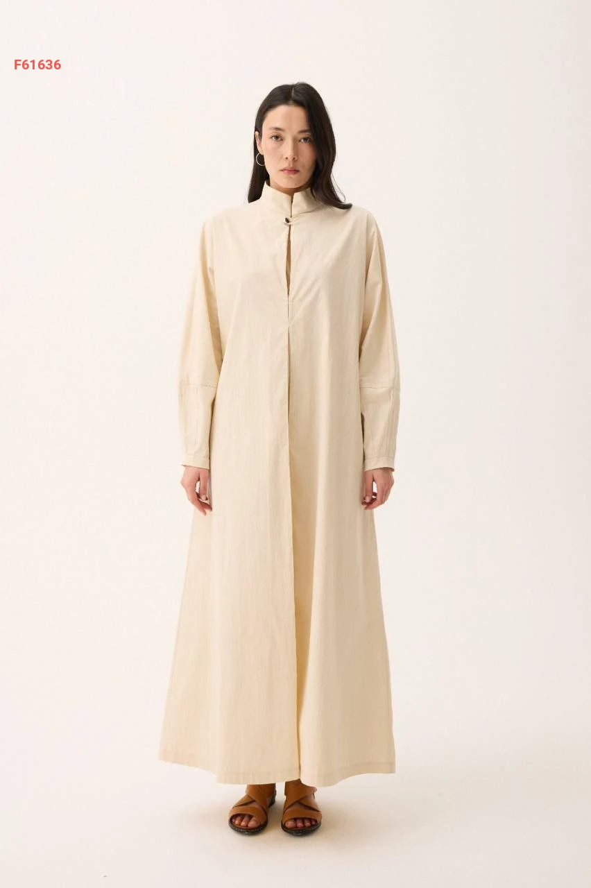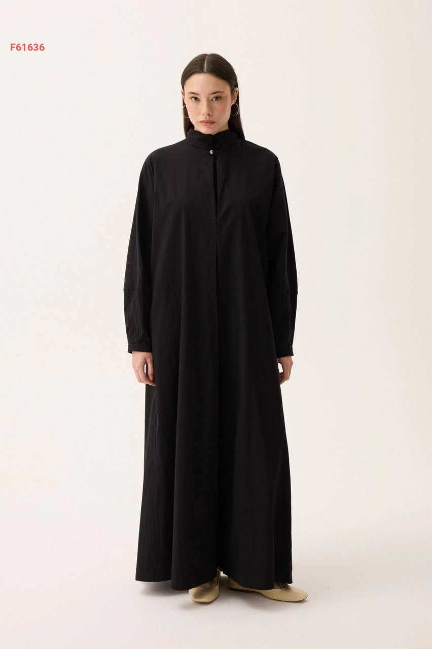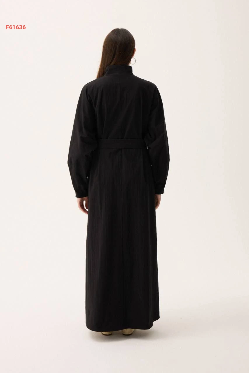 فستان طويل سادة بياقة مرتفعة مع حزام