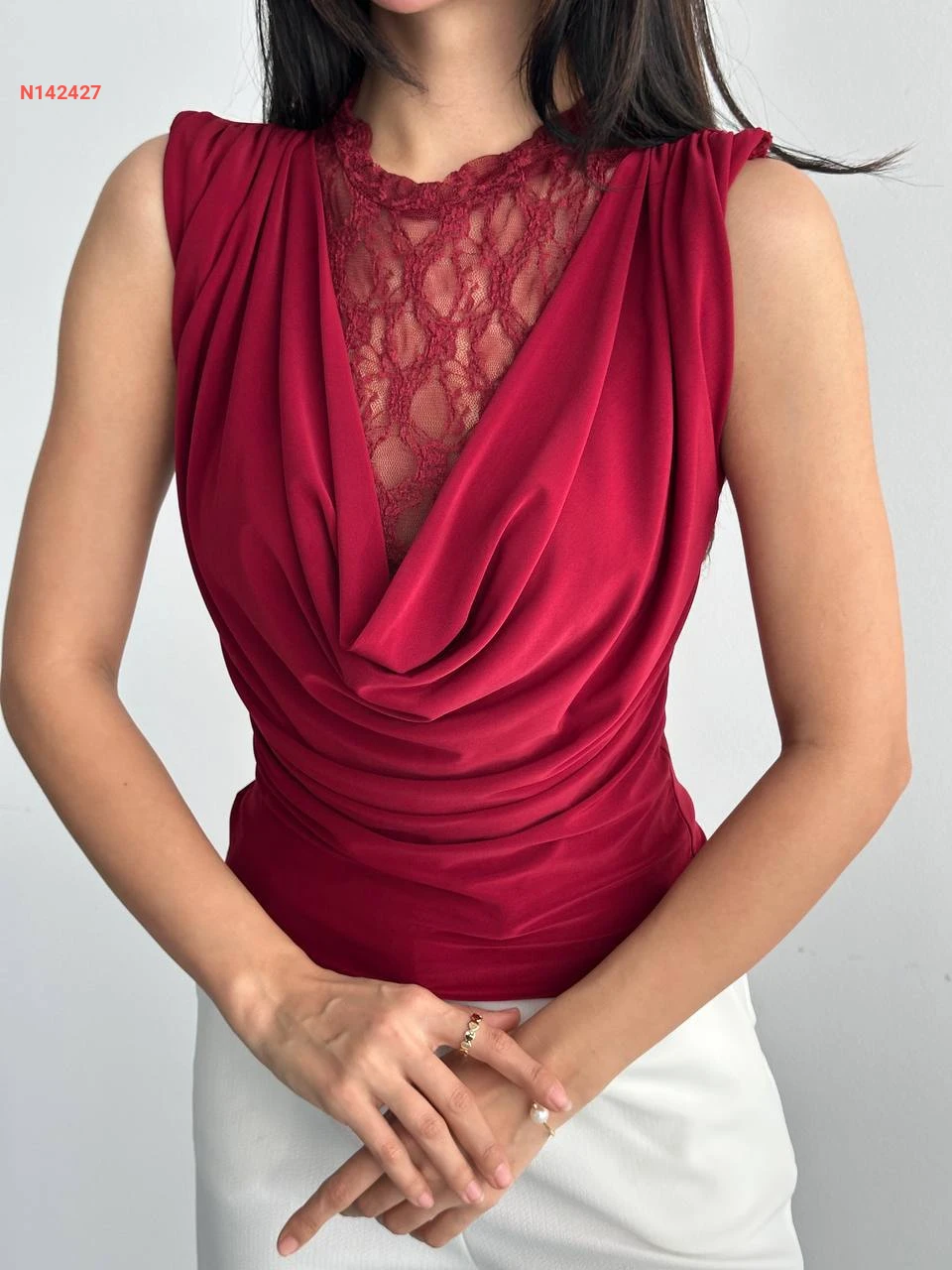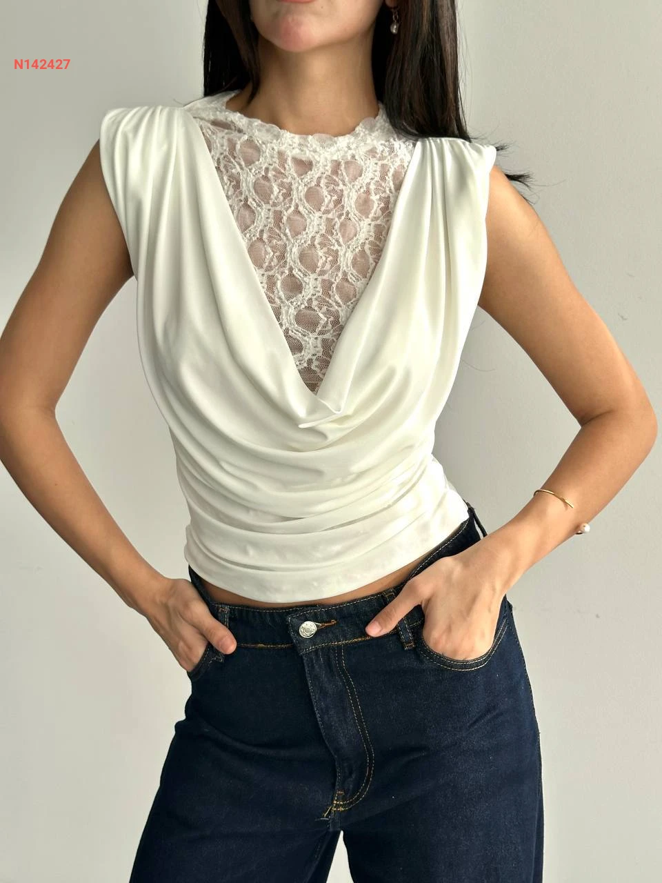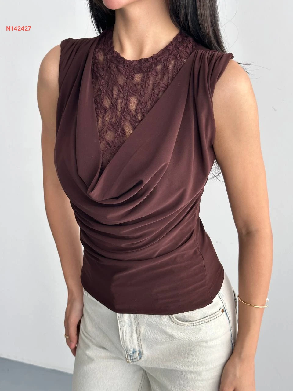 بلوزة حفر بياقة ديغاجي مع تول