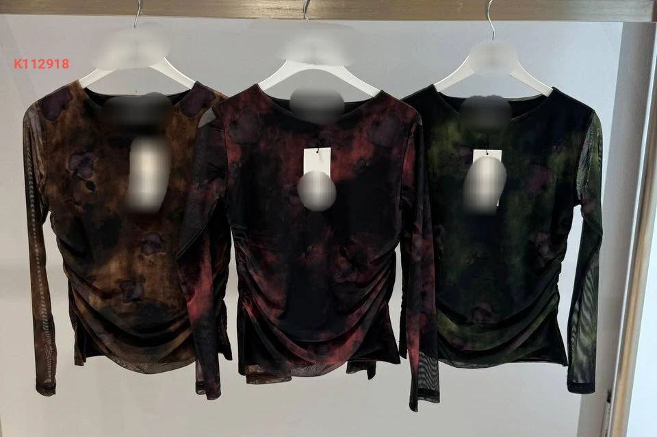 بلوزة تول منقوشة بتفاصيل مجمعة