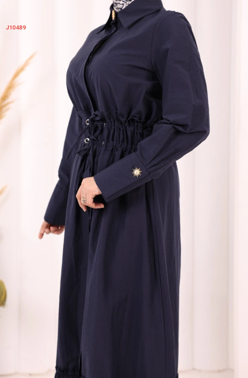 فستان بأزرار مخفية مكشكش ، بخصر مطاطي