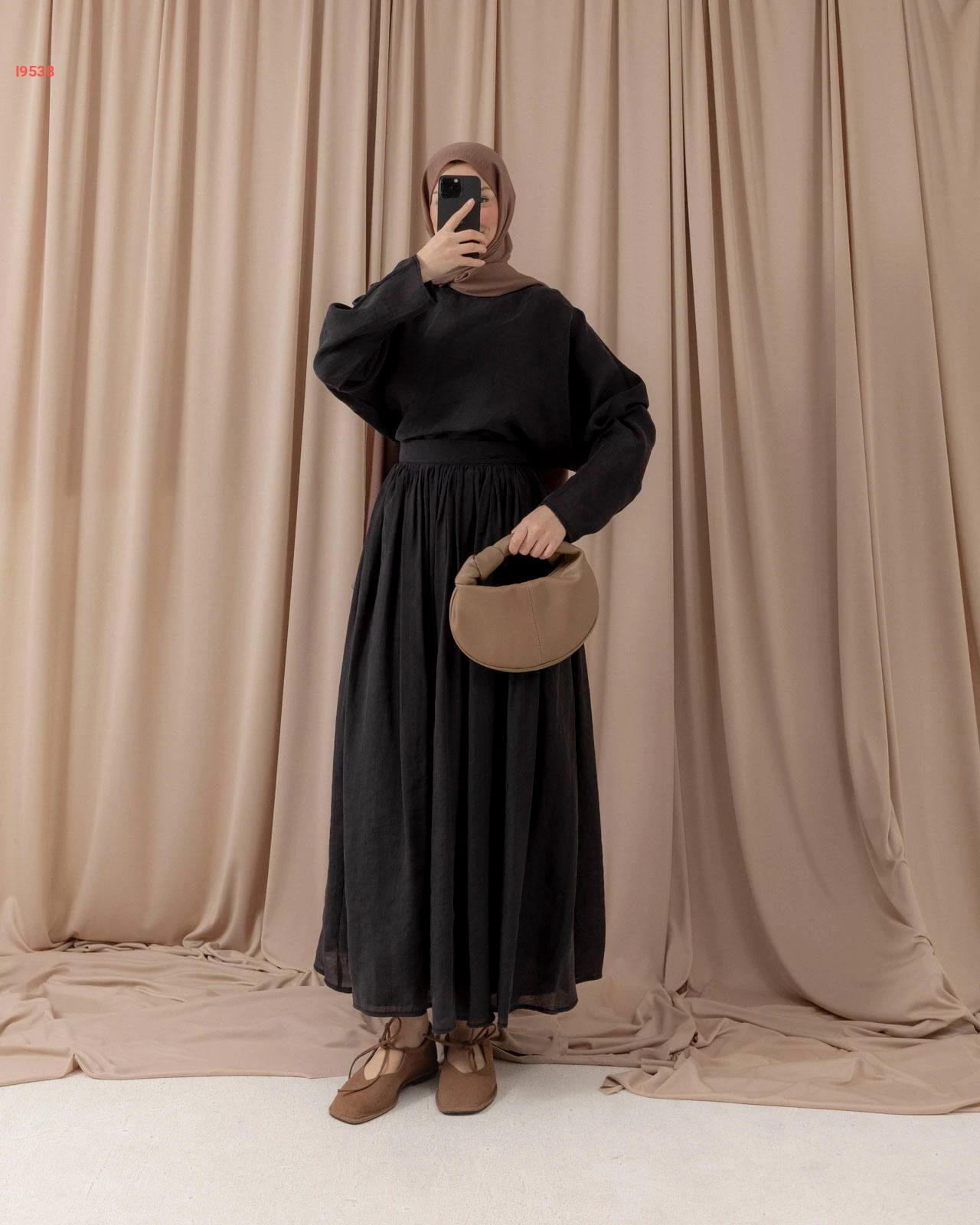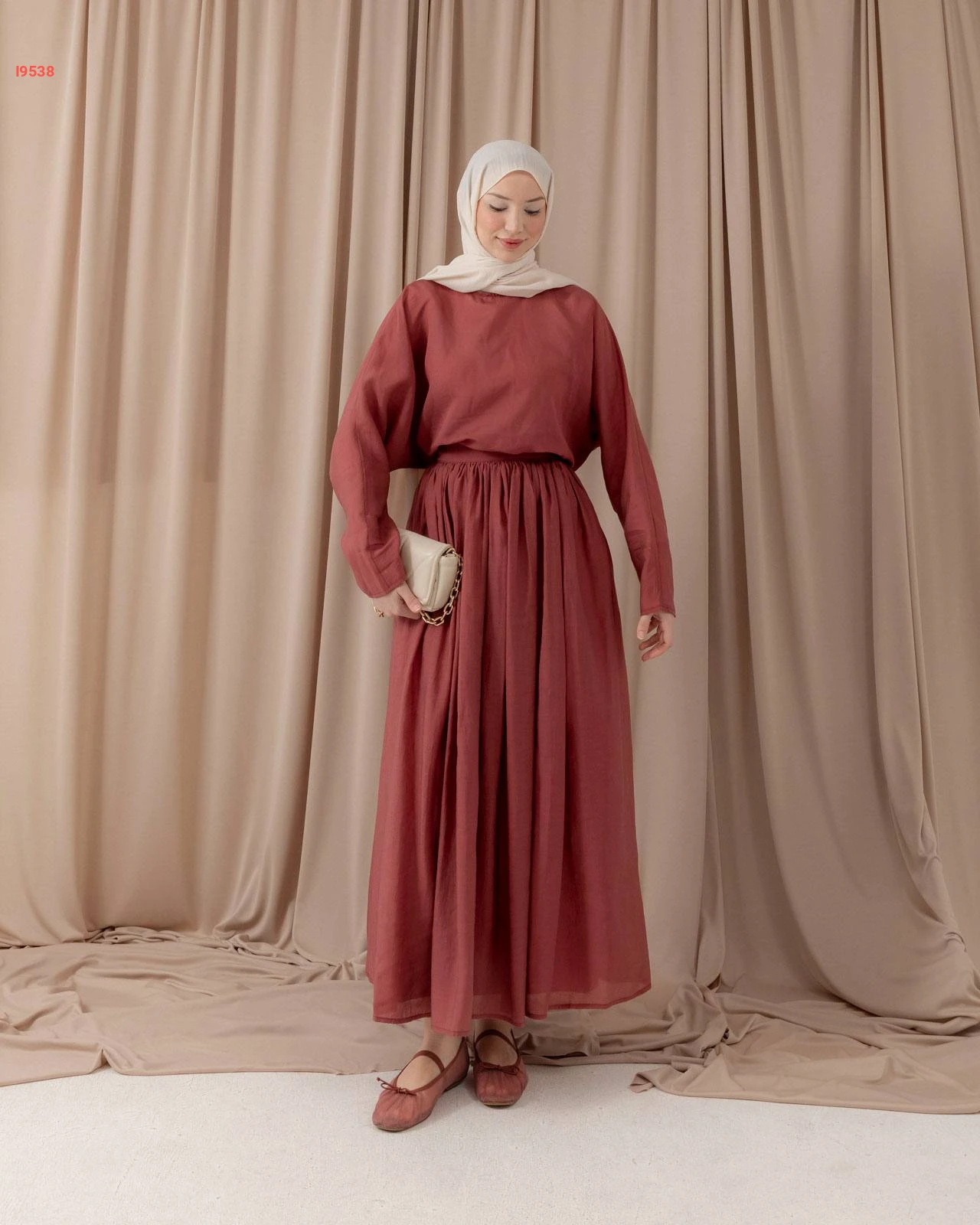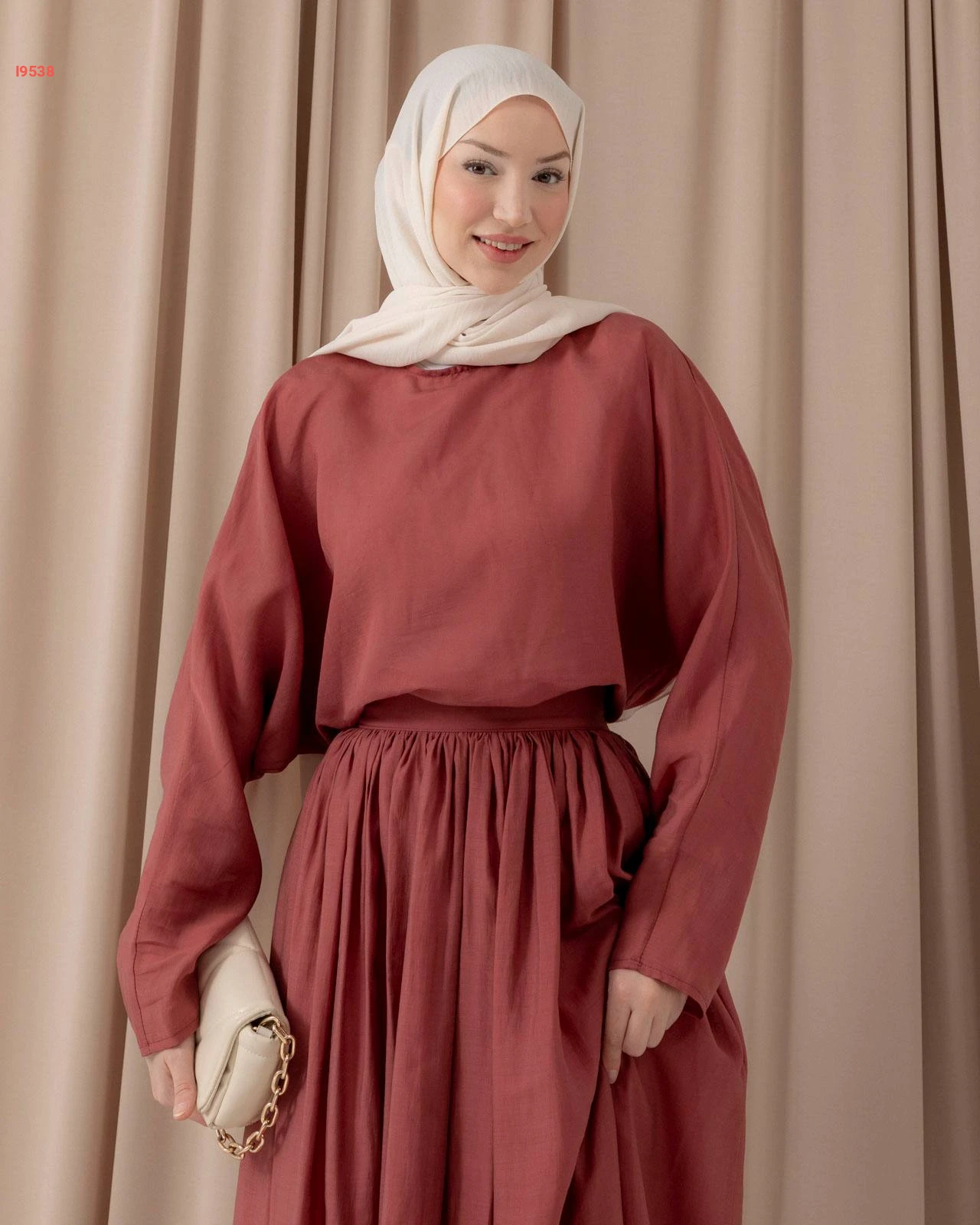 طقم بلوزة فضفاضة وتنورة واسعة بخصر مطاطي