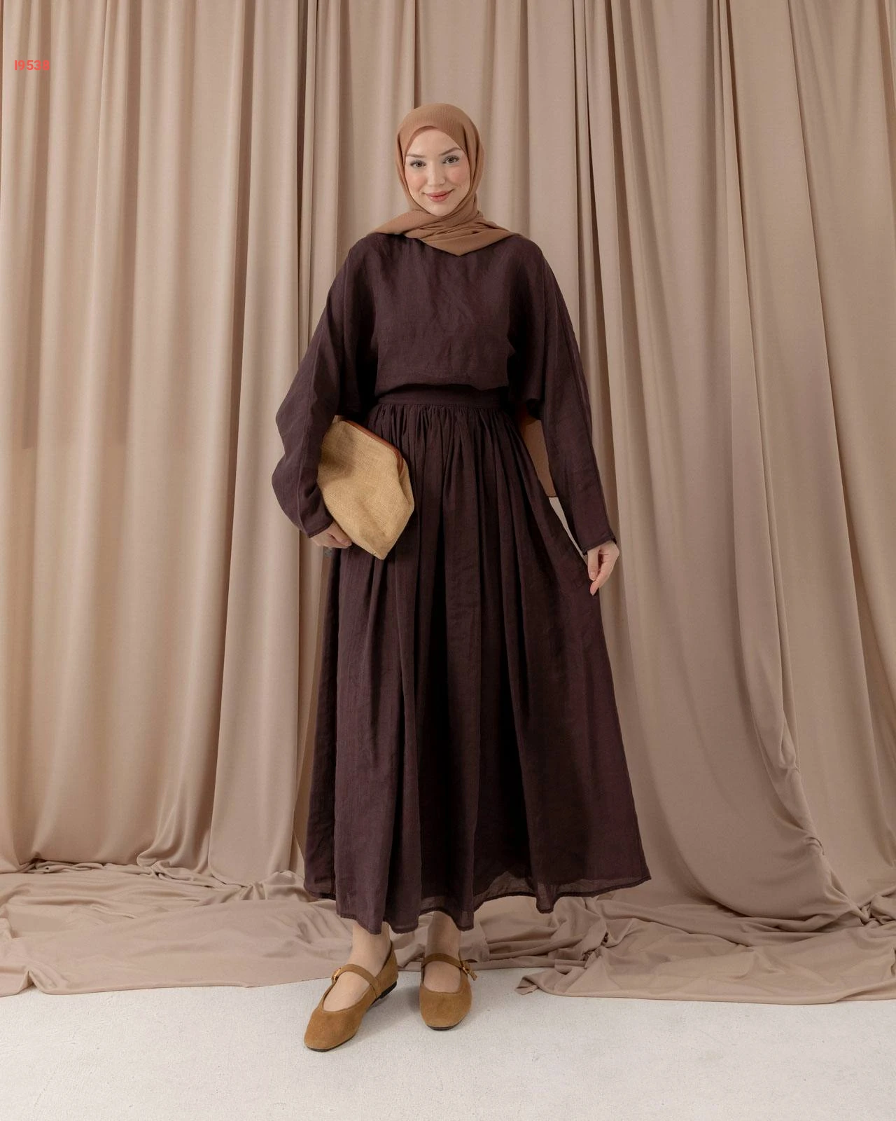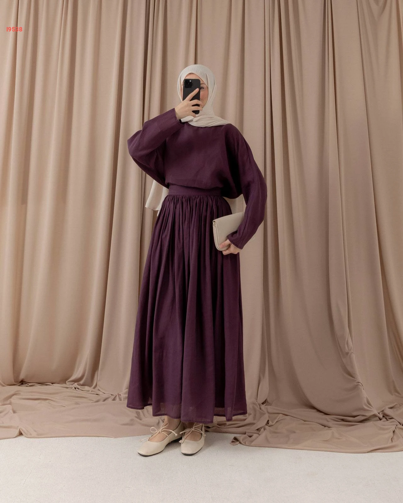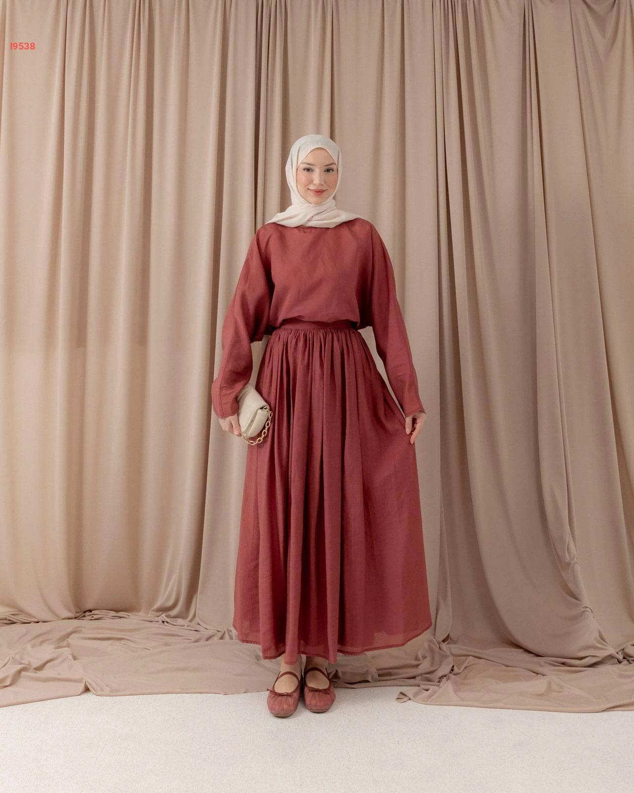 طقم بلوزة فضفاضة وتنورة واسعة بخصر مطاطي
