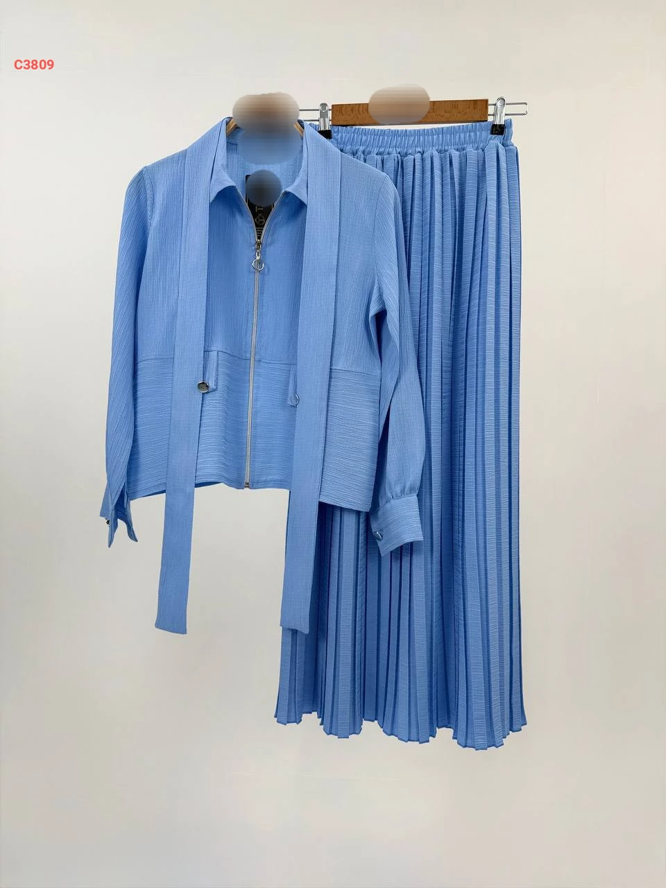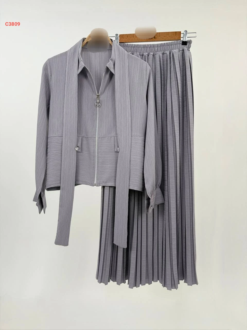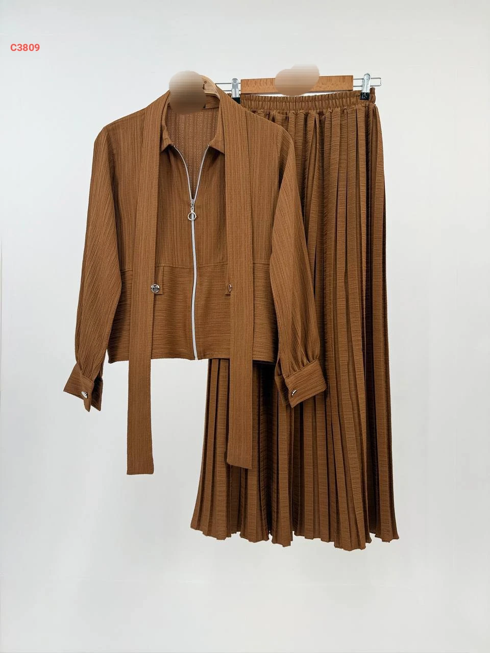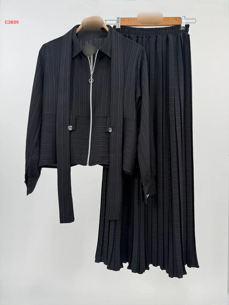 طقم تنورة مكسرة وجاكيت بسحاب