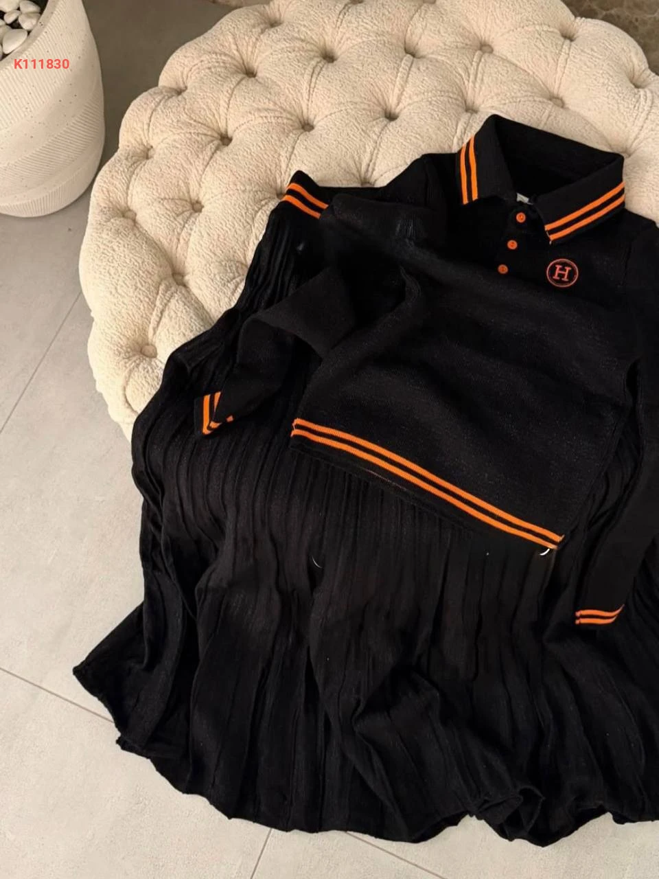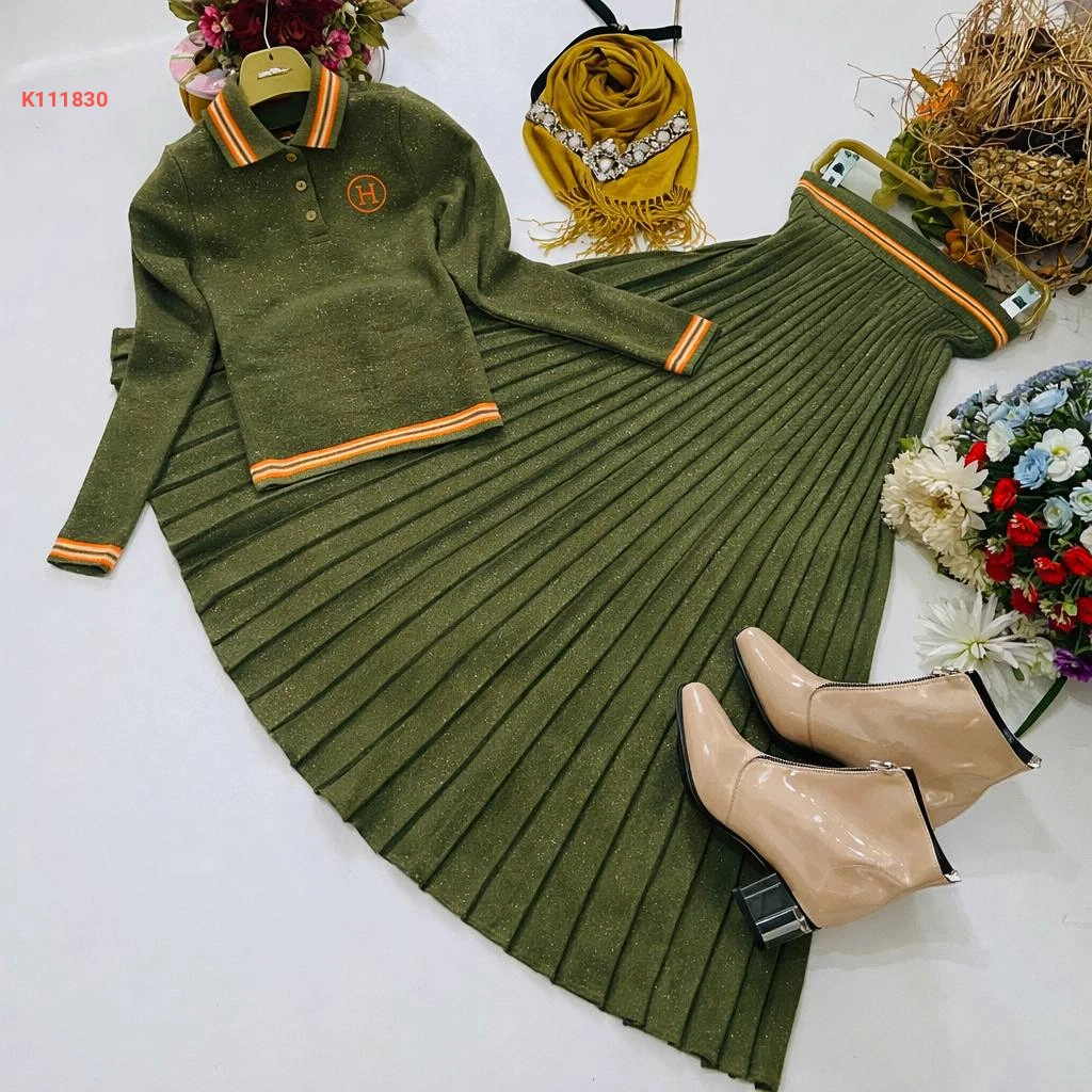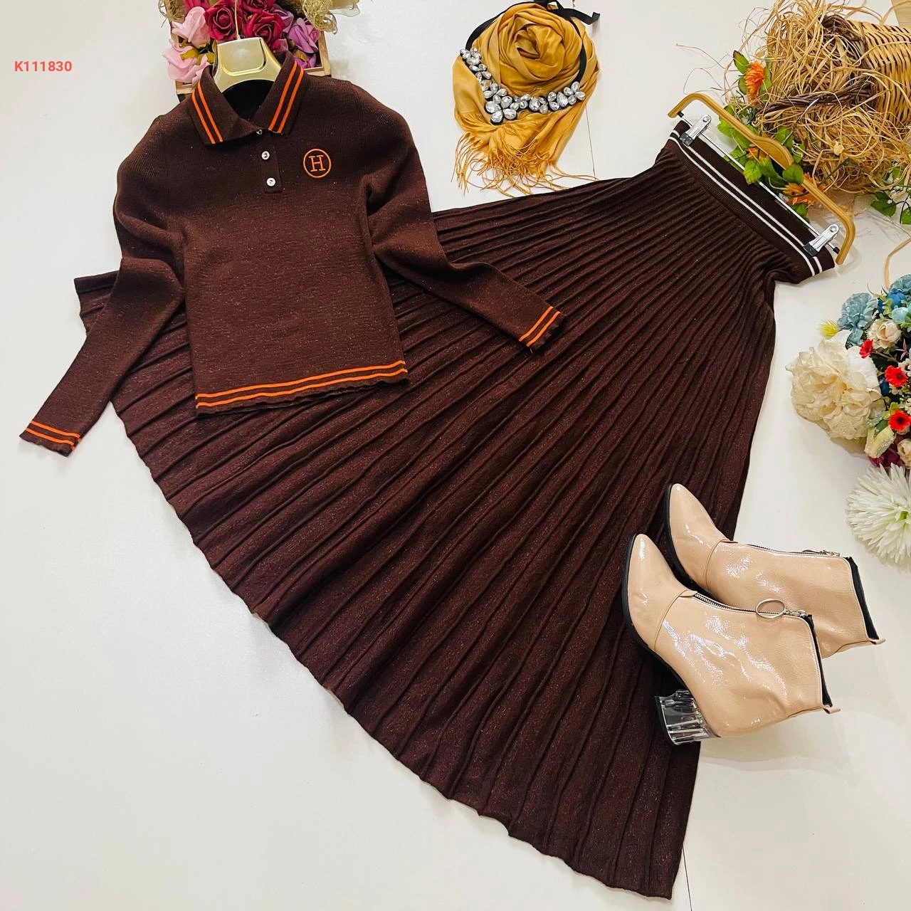طقم تنورة مكسرة مع كنزة تريكو محجبات