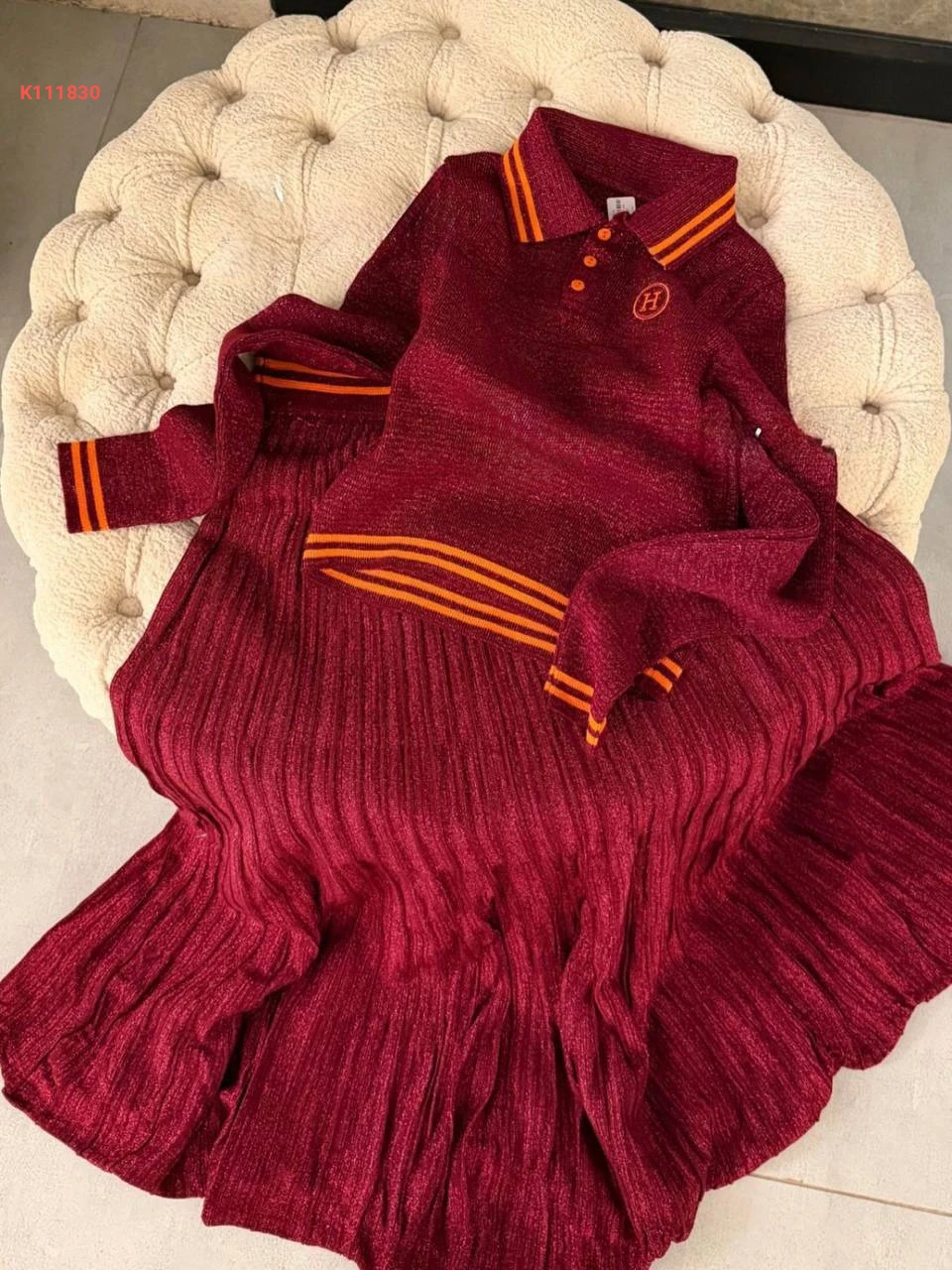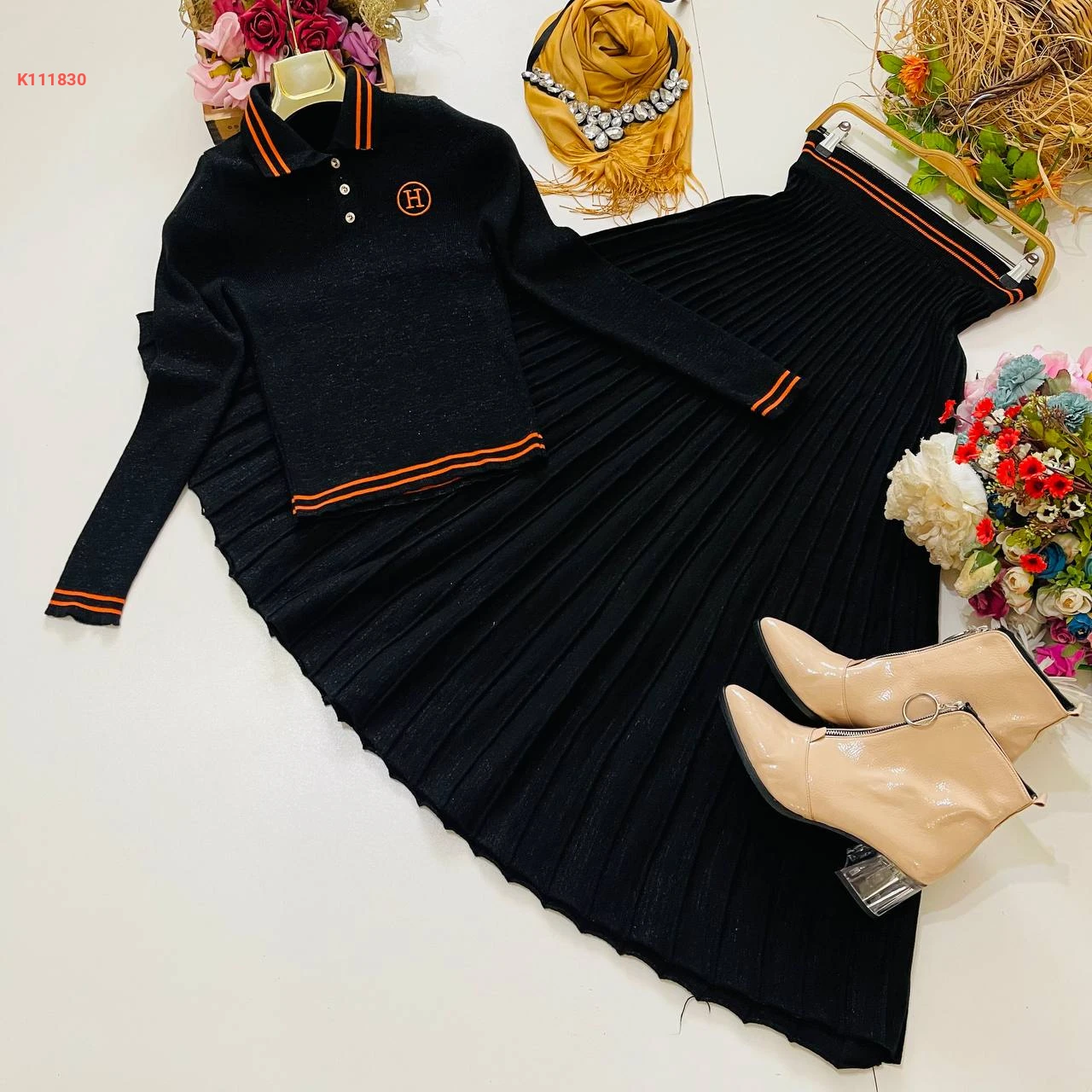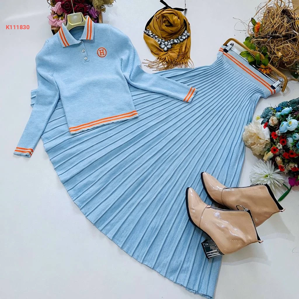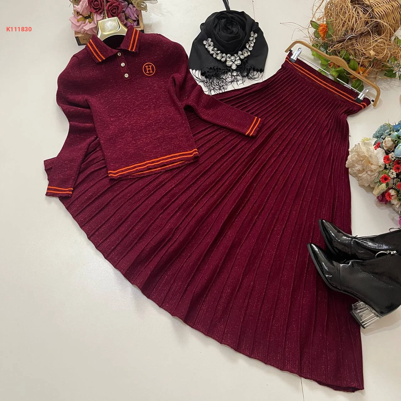 طقم تنورة مكسرة مع كنزة تريكو محجبات