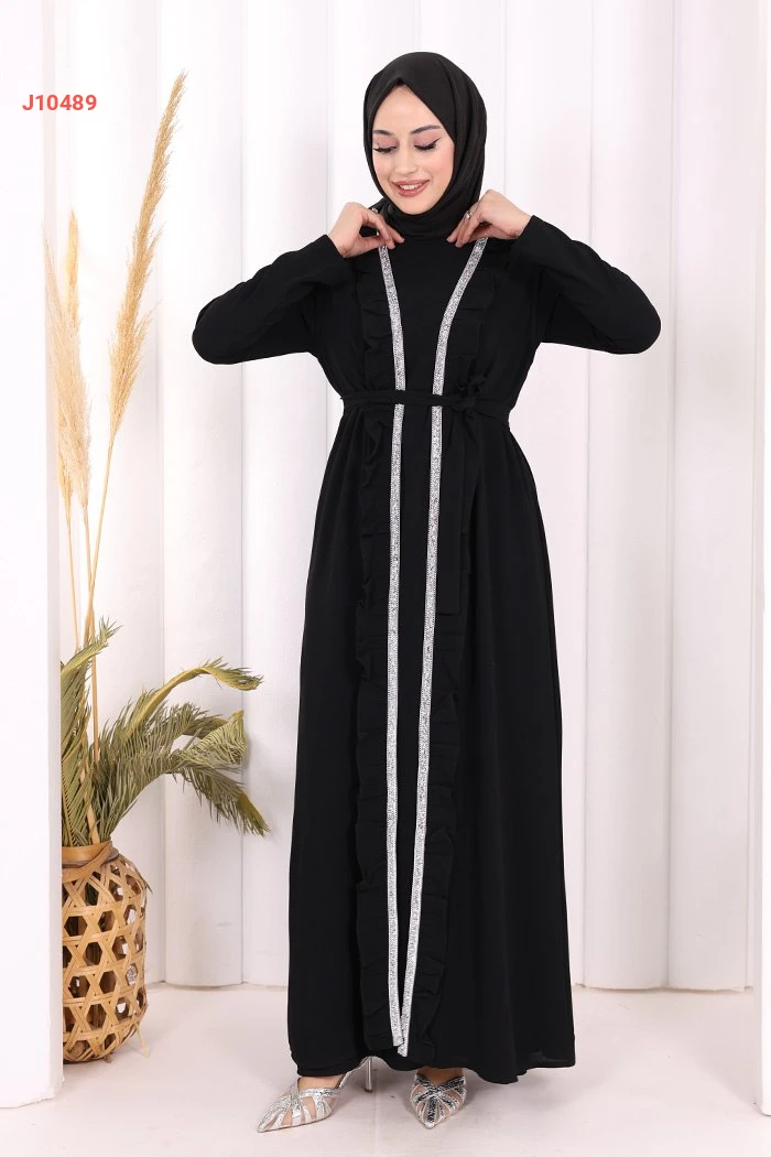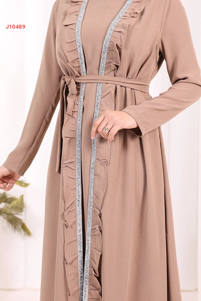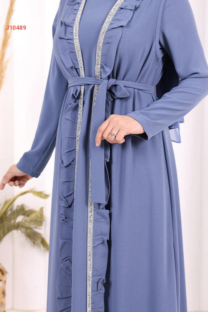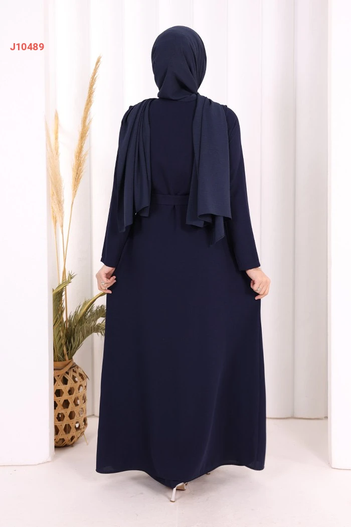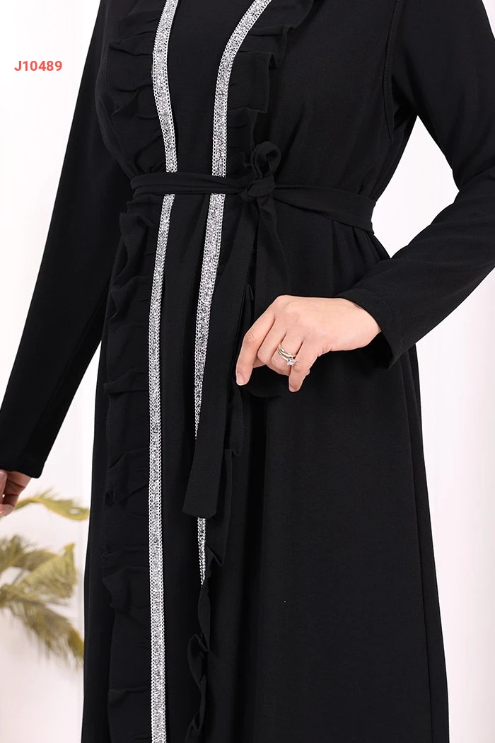 طقم عباية مع فستان سادة وحزام