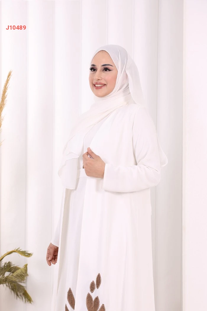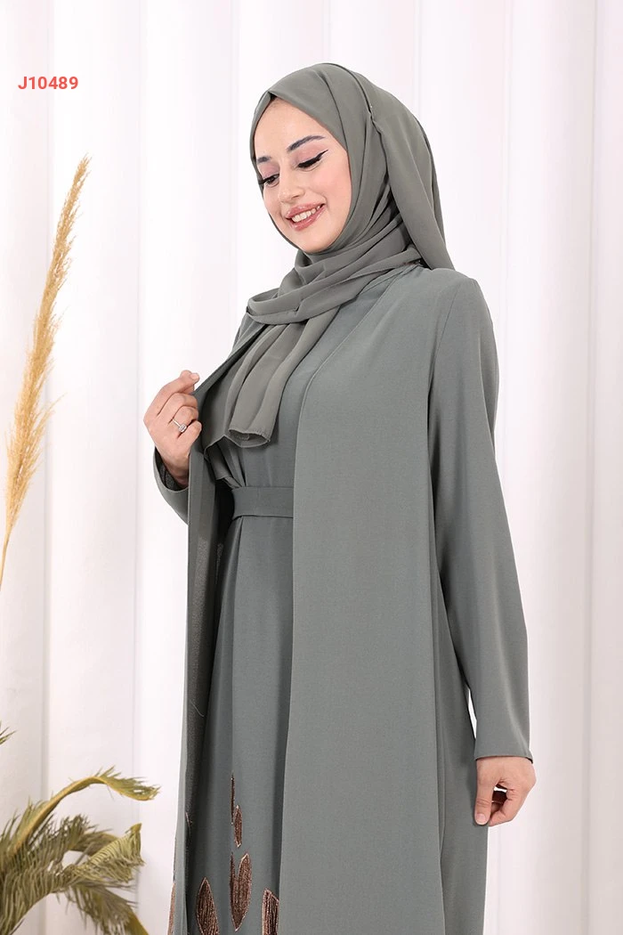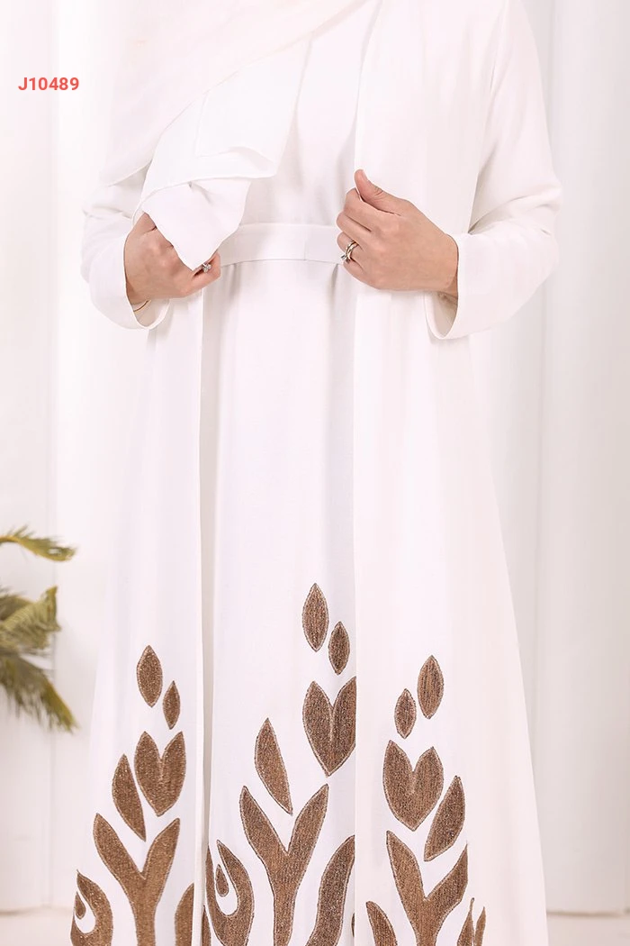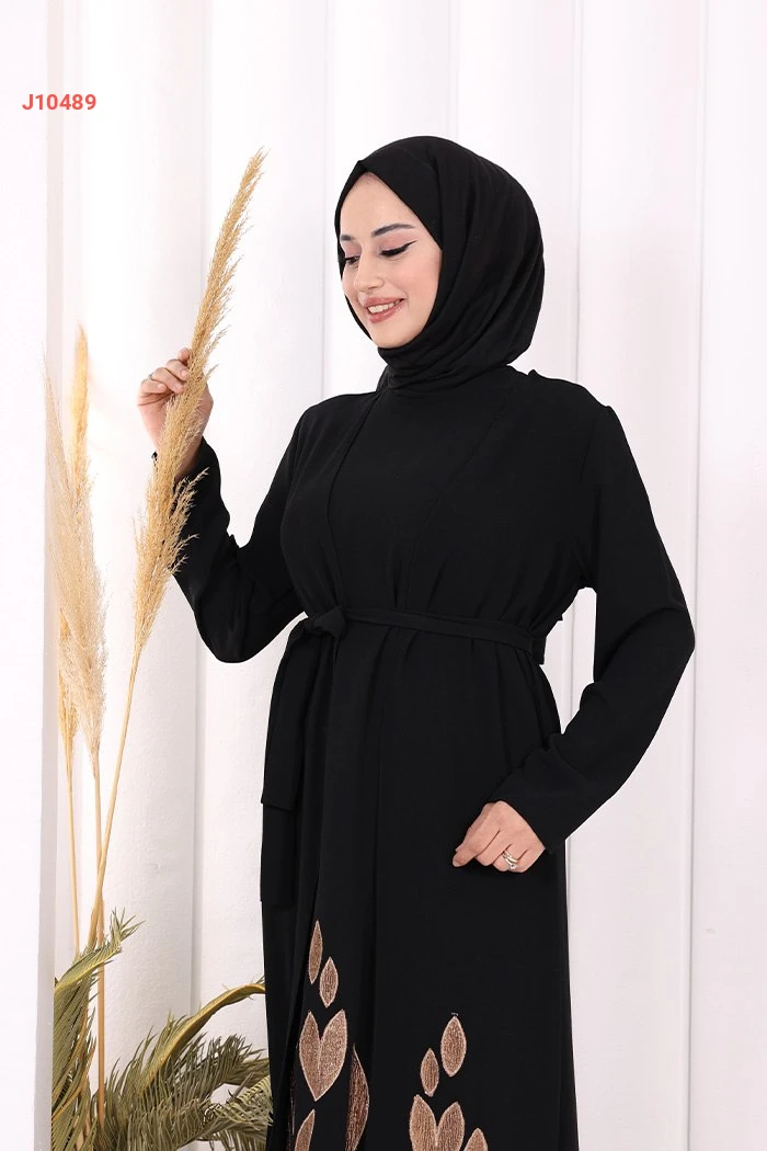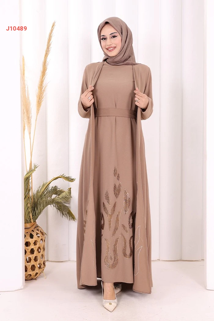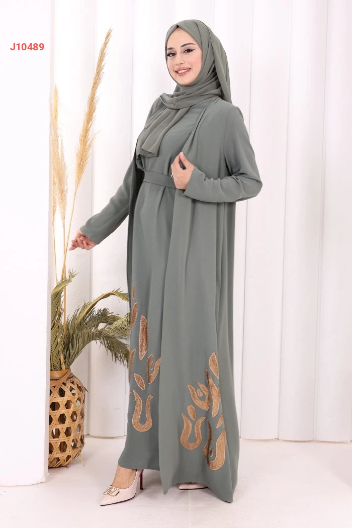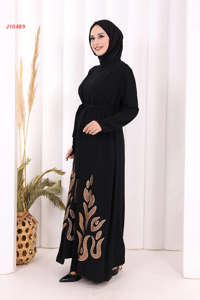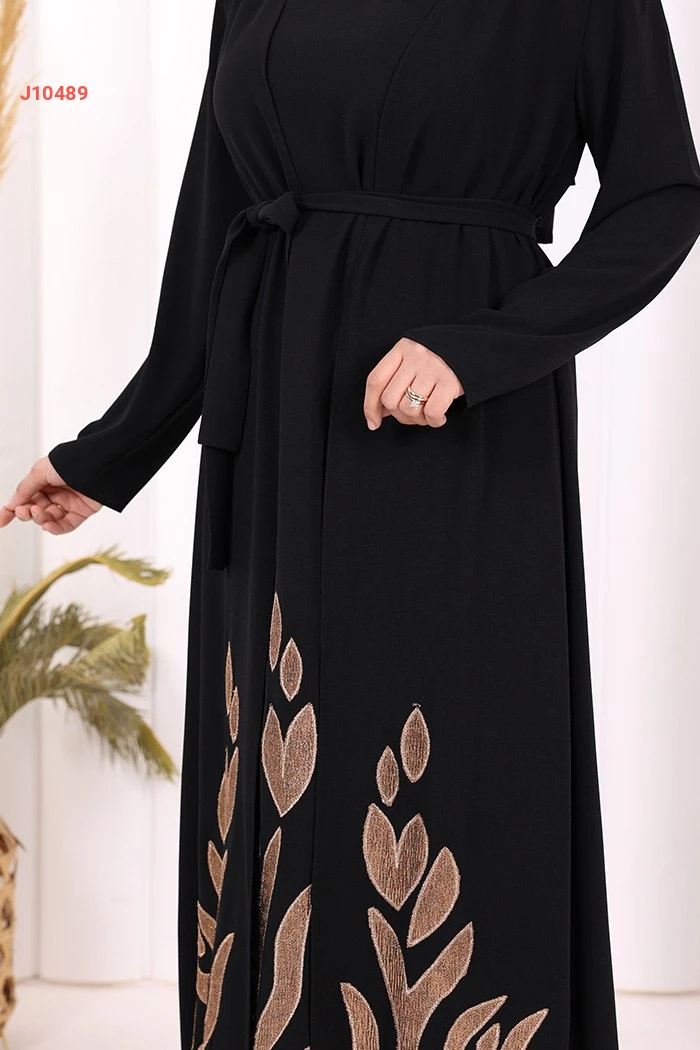 طقم عباية مع فستان بتطريز ذهبي مع حزام