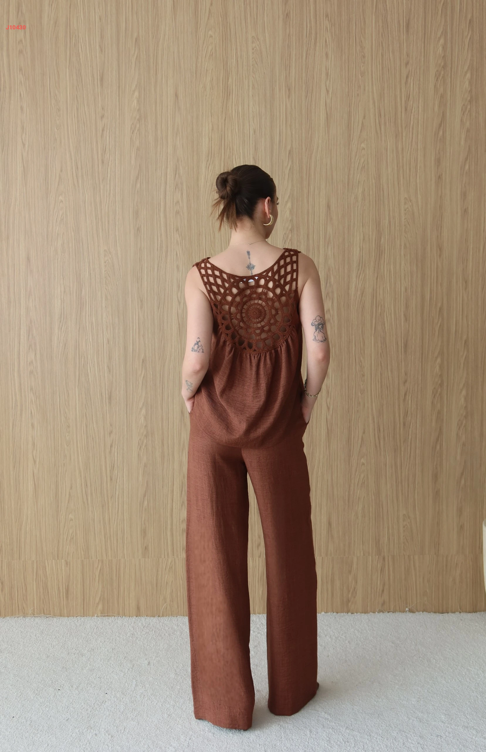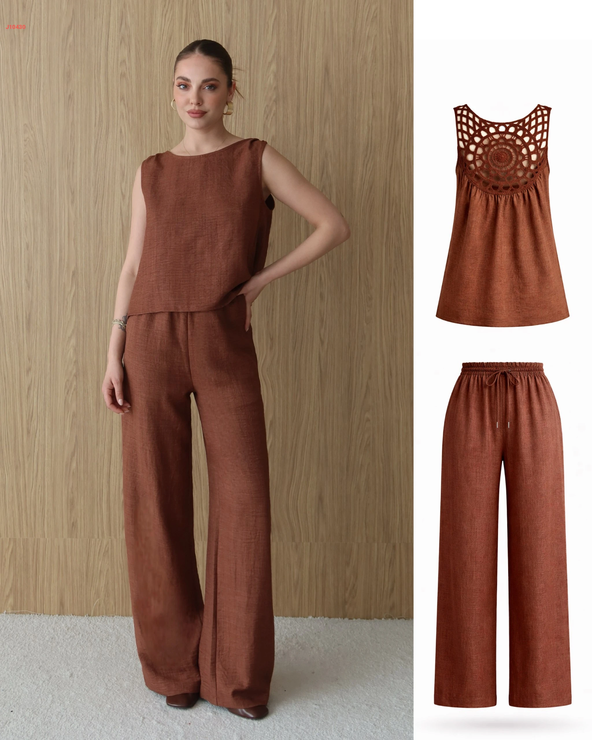 طقم بنطال وبلوزة حفر مفرغة من الخلف