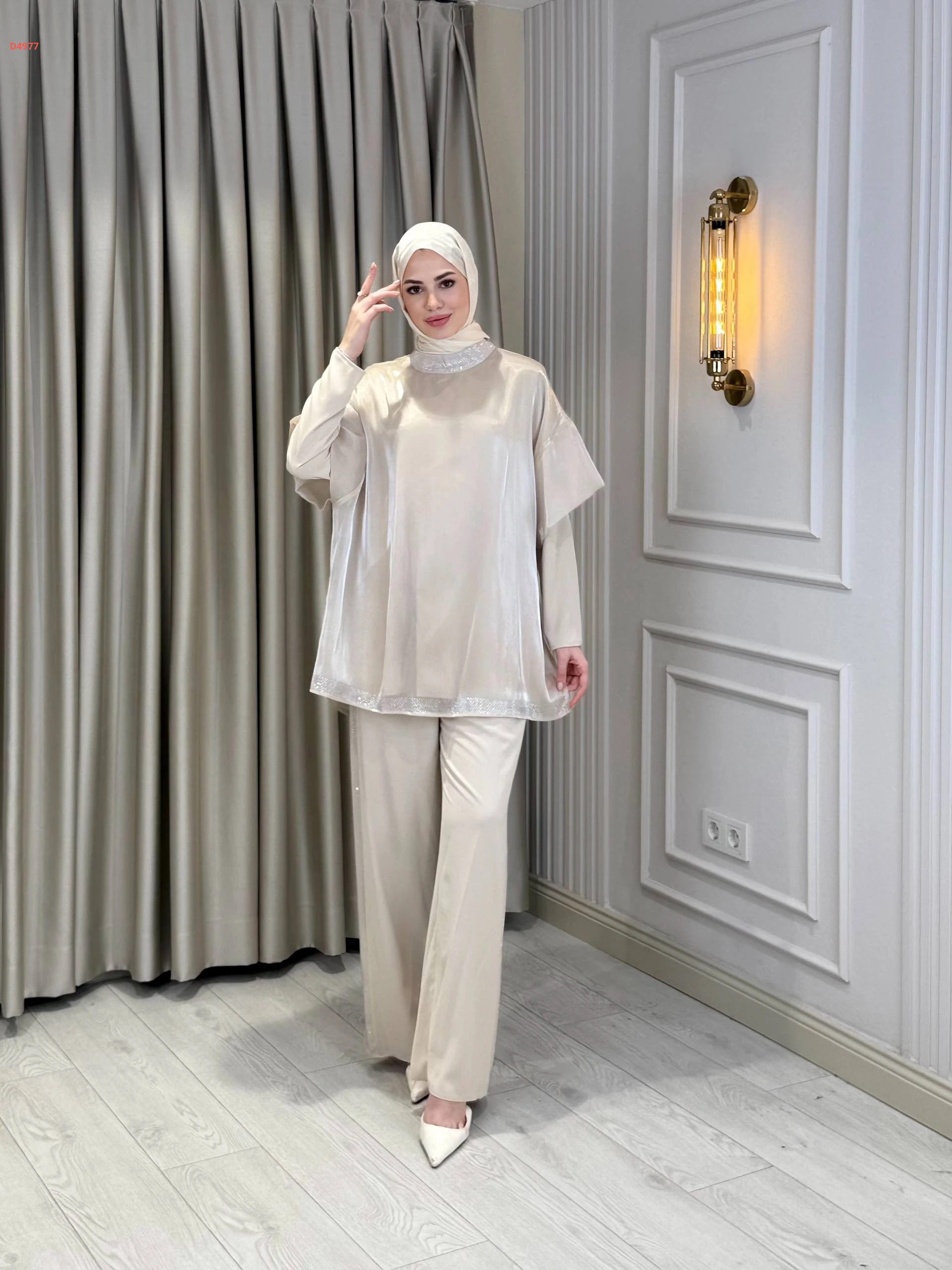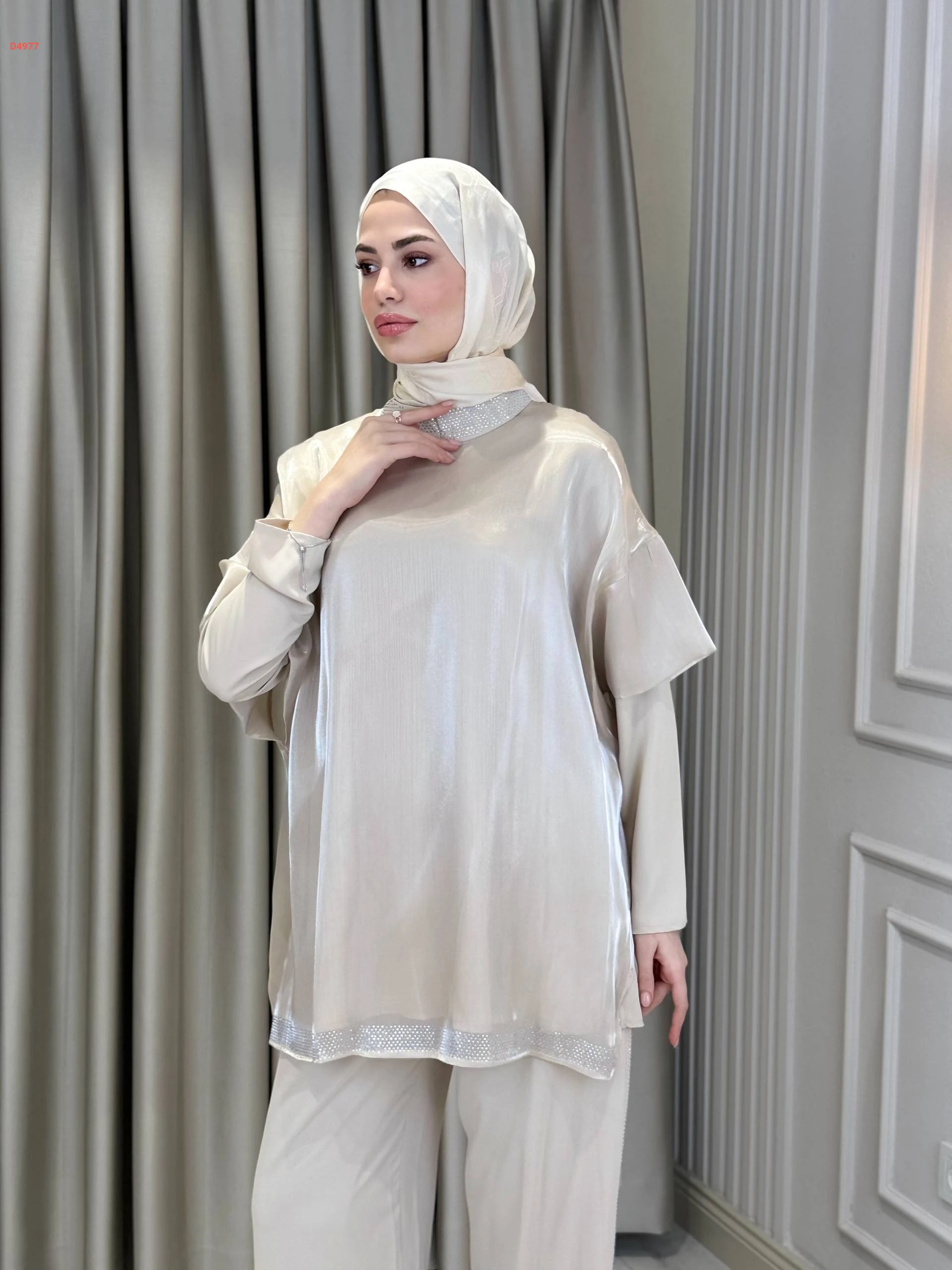 طقم بنطال وبلوزة لميع بستراس