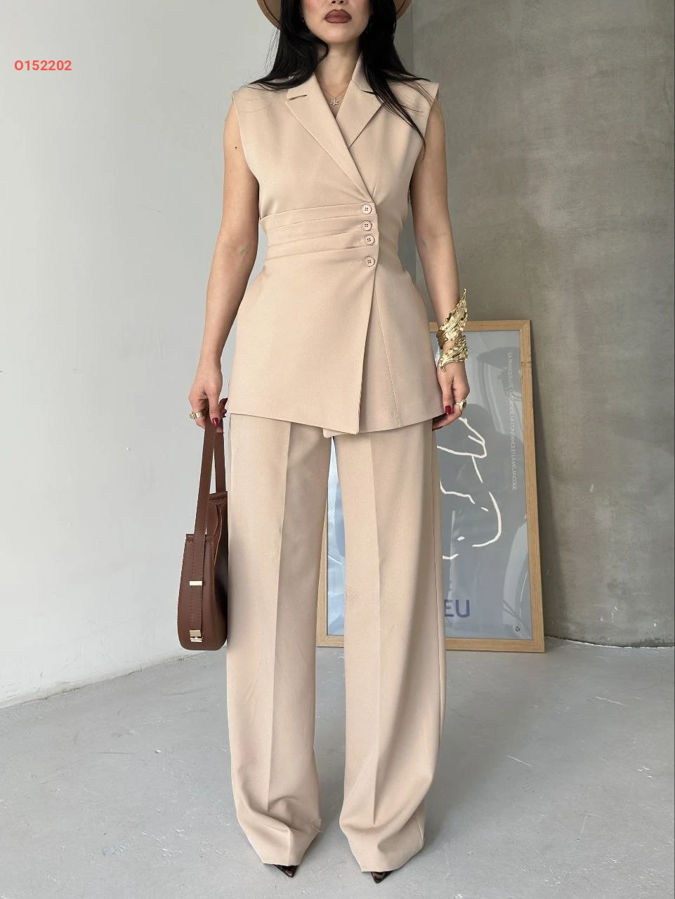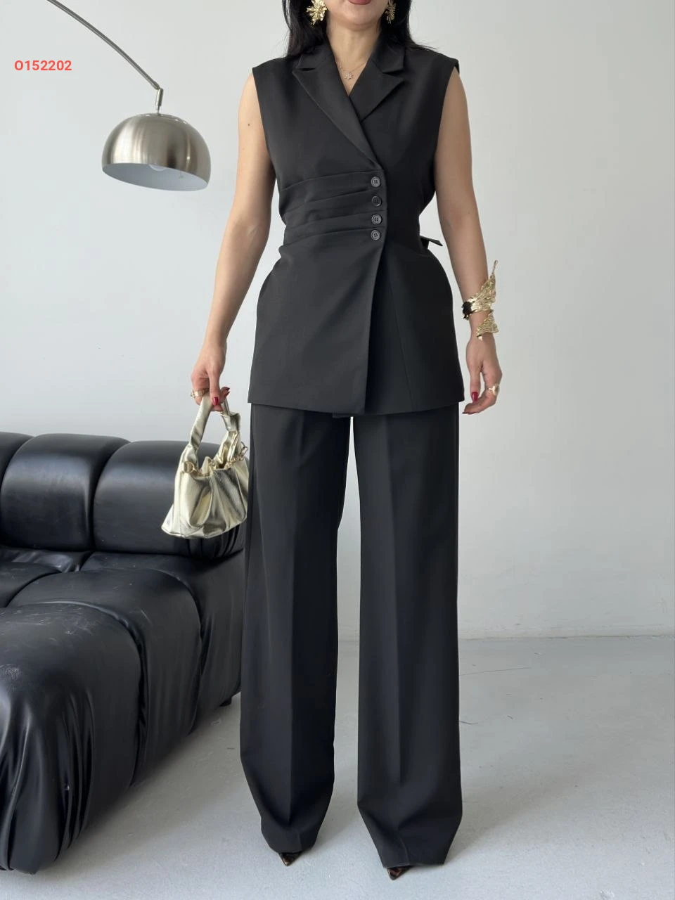 طقم بنطال ويلك مخصر بزنار خلفي