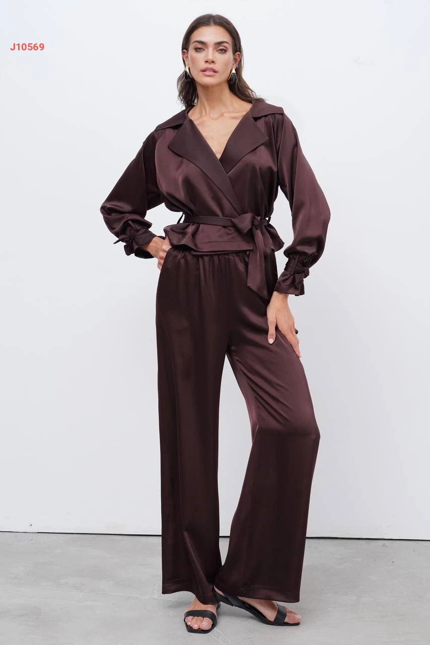 طقم بنطال لميع وجاكيت بحزام