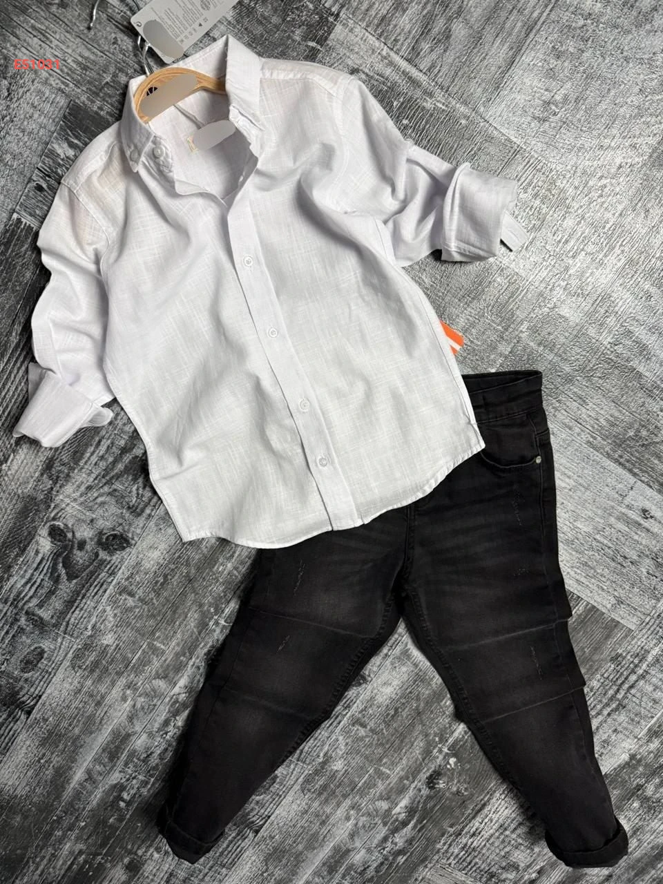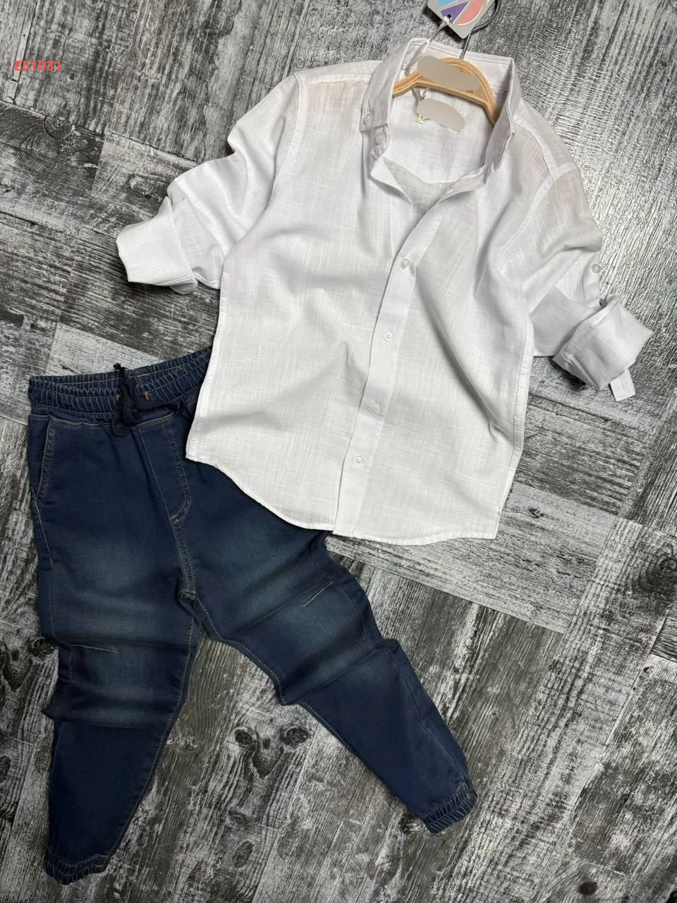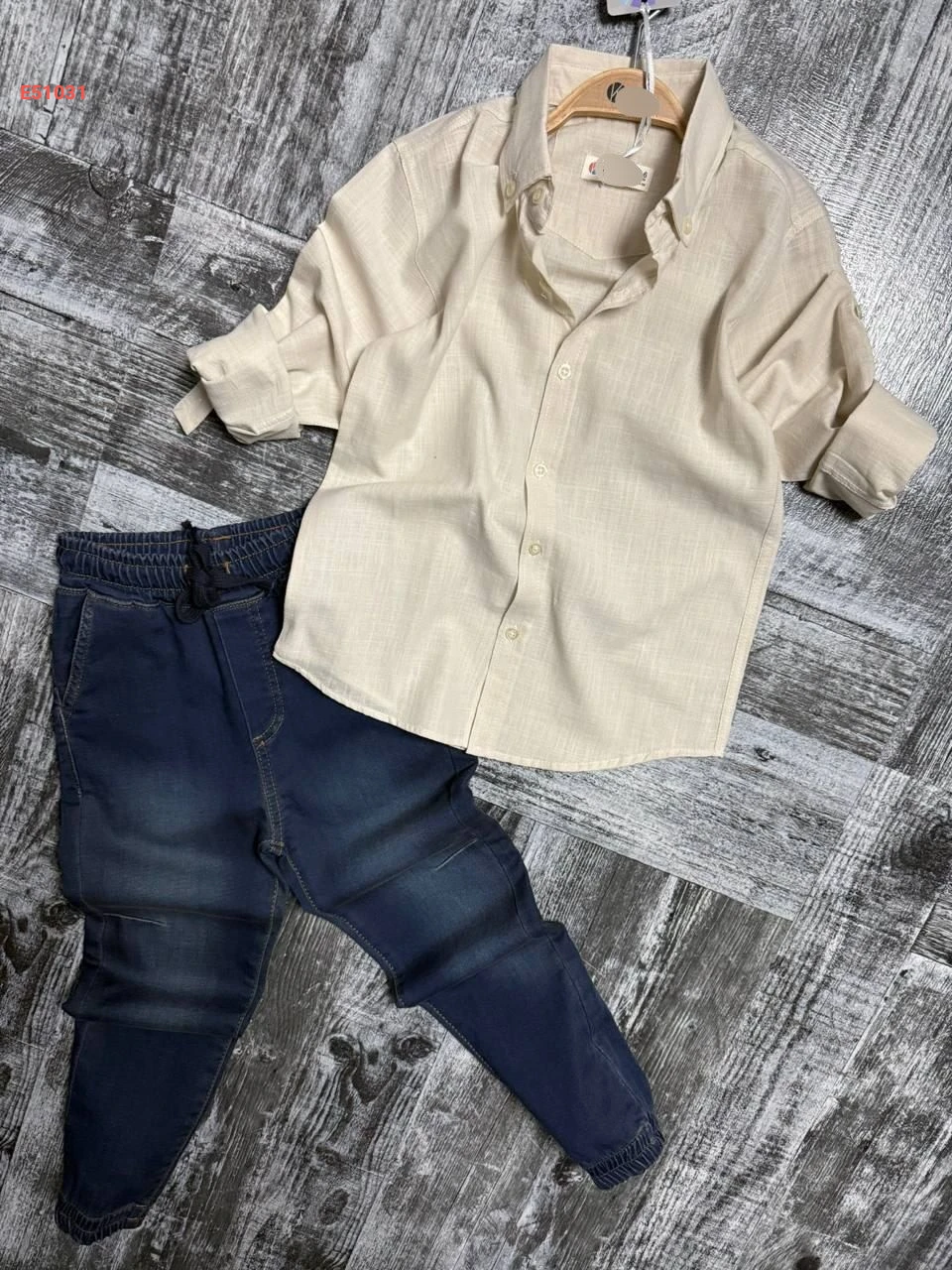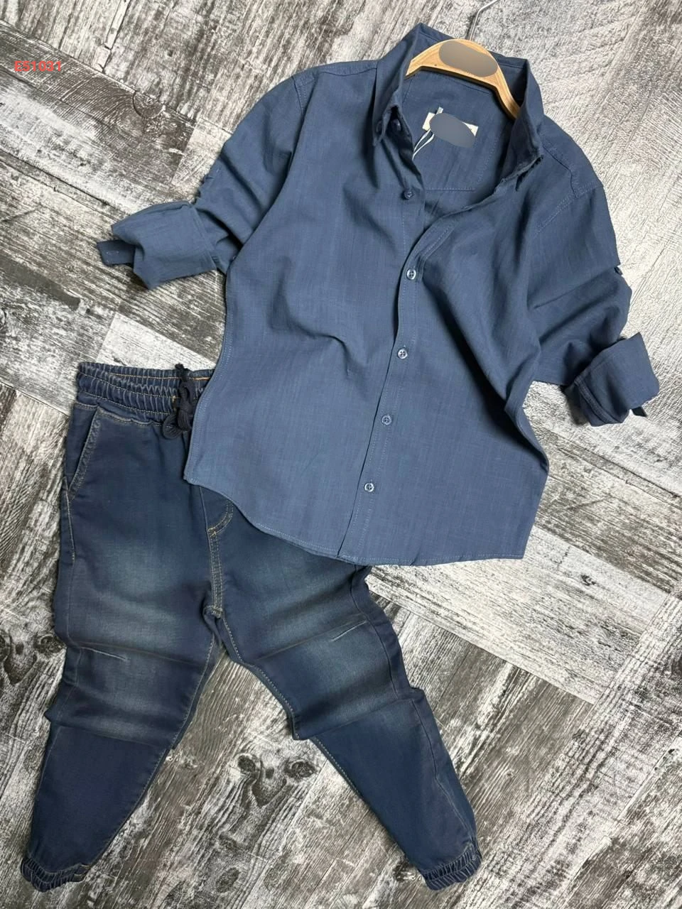 طقم قميص مع بنطال جينز صبياني
